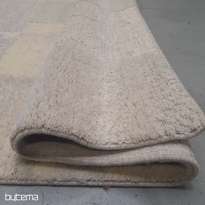 Lujosa alfombra belga en colores pastel con motivos geométricos en 3D. El efecto plástico se crea gracias a la disposición diferente del pelo, hecho de lana de oveja. Esto garantiza una alta resistencia y durabilidad.