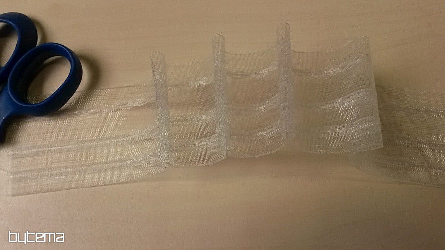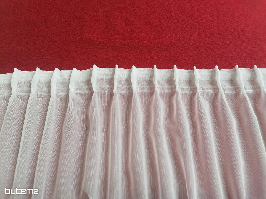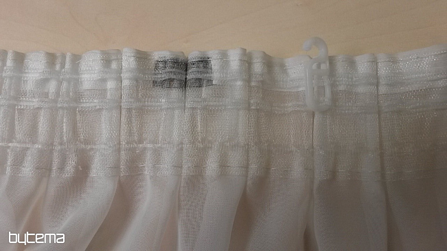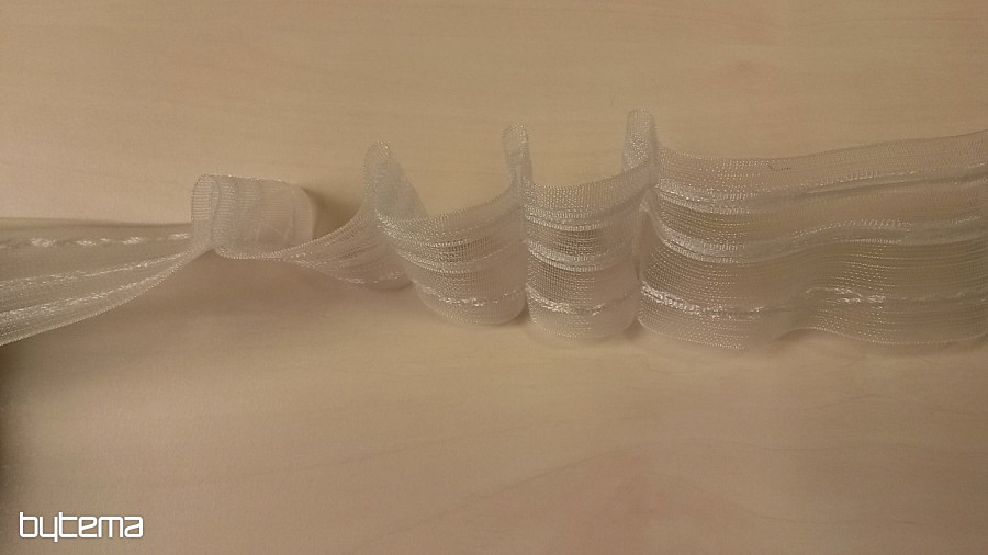 El tipo de cinta de volantes para cortinas o visillos más vendido. Costuras regulares, muy sencillas, recomendamos coser 3 veces. No más almacenes para chanclas. En la parte posterior de la cinta hay pequeños bucles para ganchos en anillos o guías para rieles.