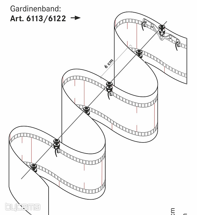 El tipo de cinta de volantes para cortinas o visillos más vendido. Costuras regulares, muy sencillas, recomendamos coser 4 veces. No más almacenes para chanclas. En la parte posterior de la cinta hay pequeños bucles para ganchos en anillos o guías para rieles.