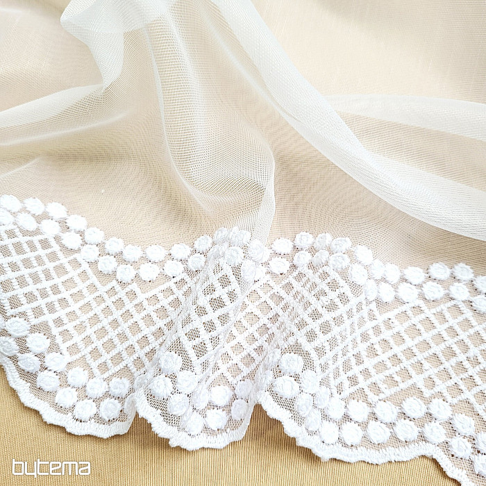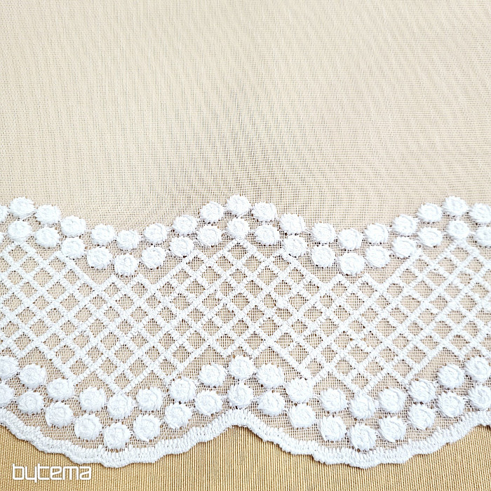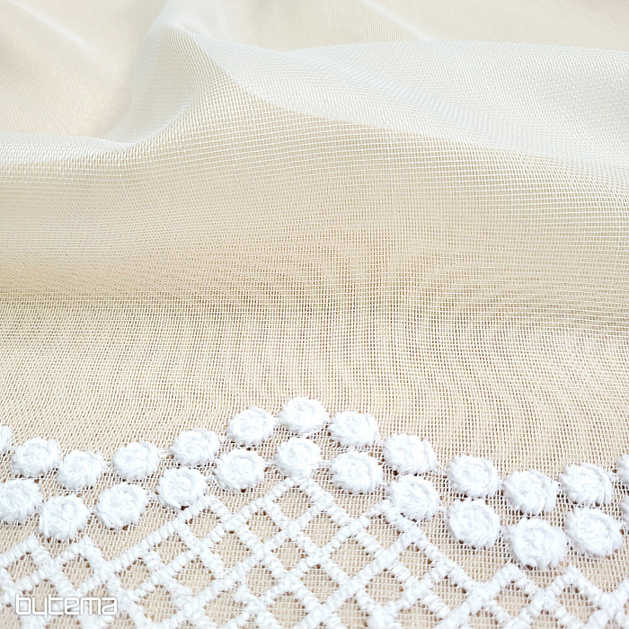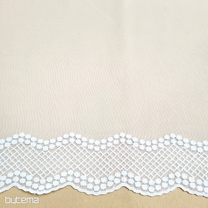 Preciosa y delicada cortina de 300 cm de alto, rematada con un encantador borde. Toda la superficie de la cortina es lisa, sin estampados.