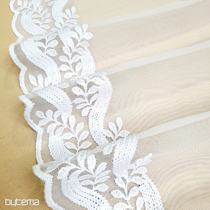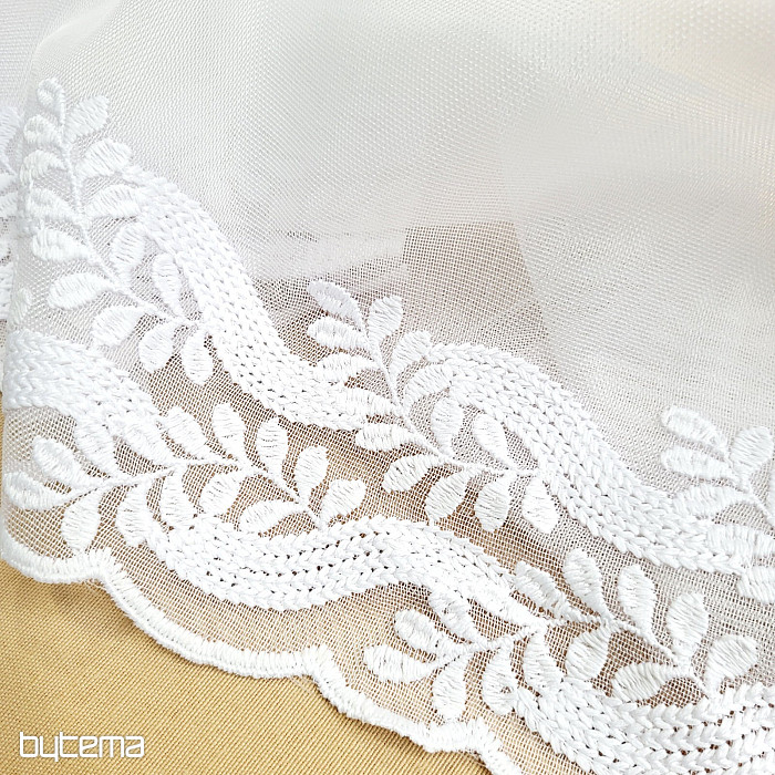 Preciosa y delicada cortina de 300 cm de alto, rematada con un encantador borde. Toda la superficie de la cortina es lisa, sin estampados.