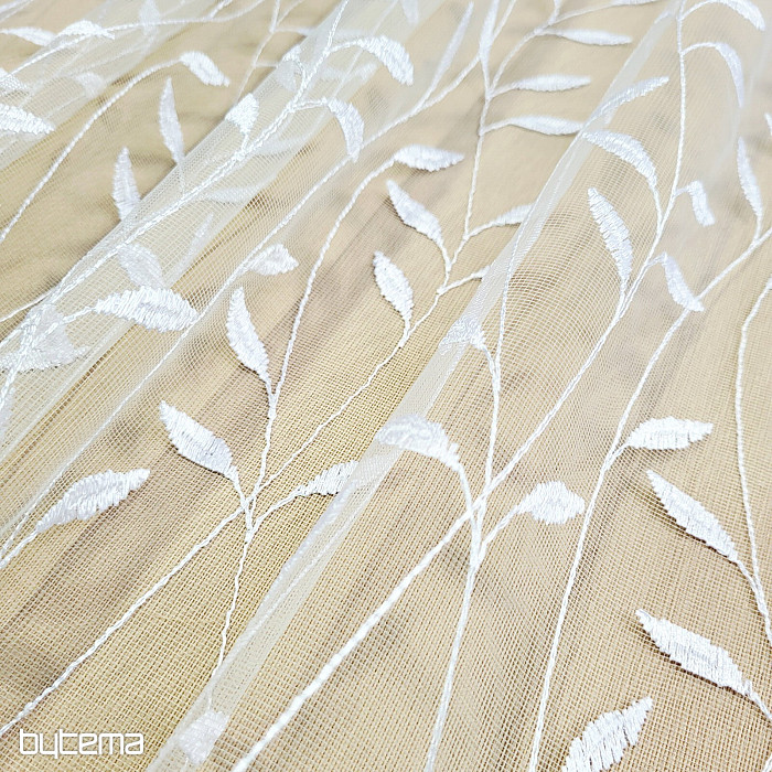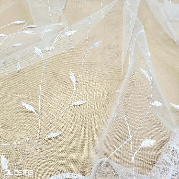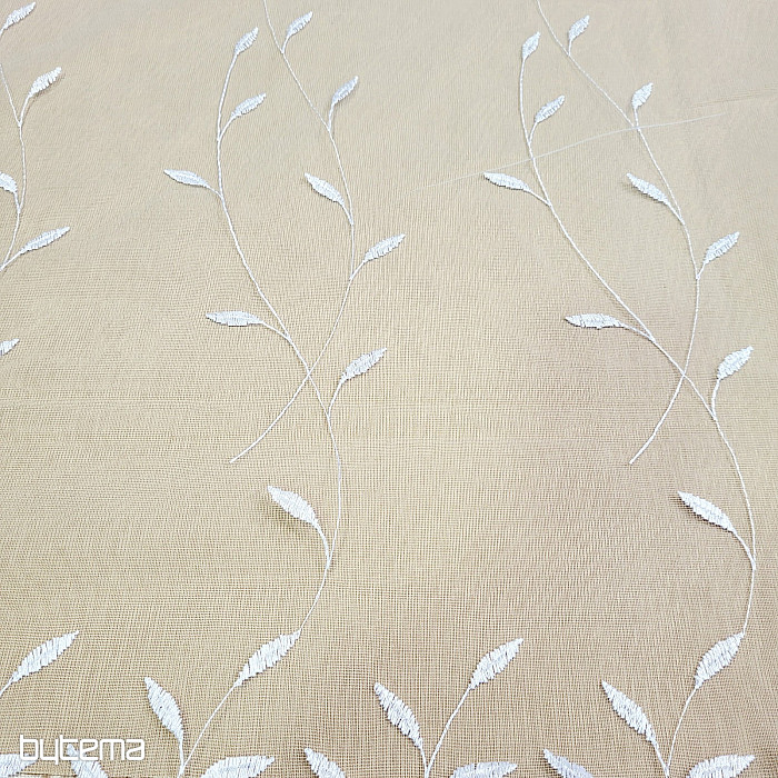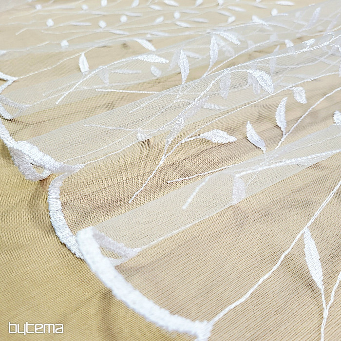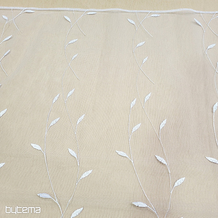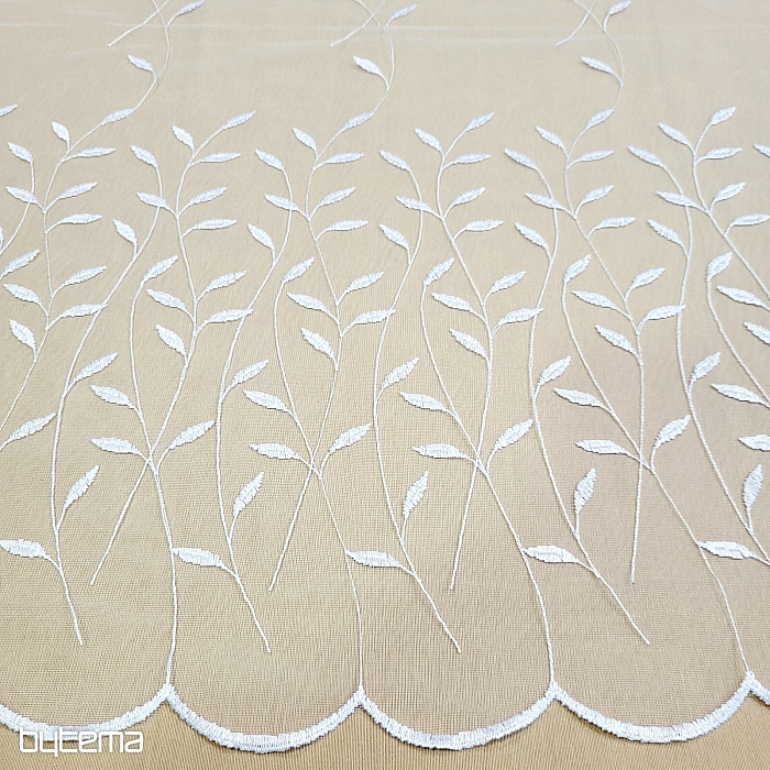 Cortina con cenefa bordada por toda su superficie, hojas preciosas, delicadas y discretas.
