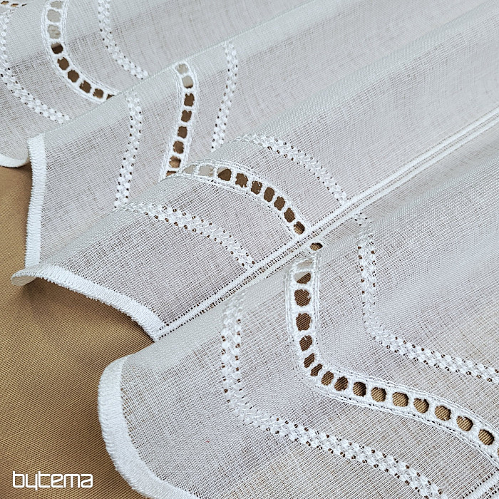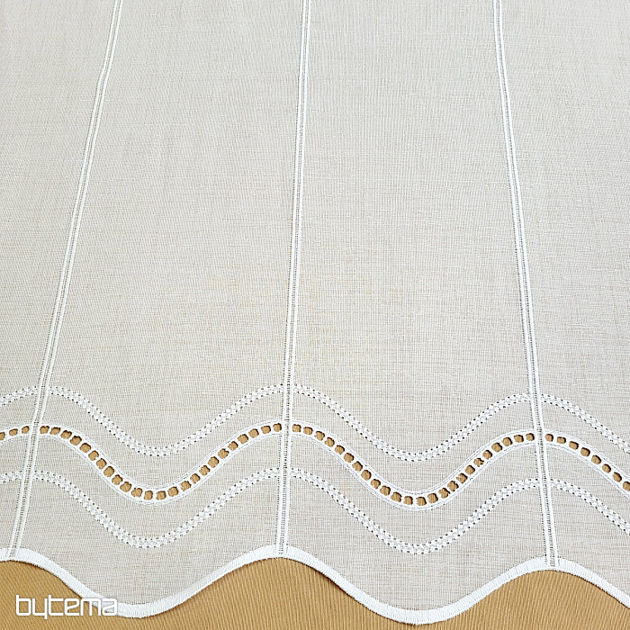 Una cortina bordada sencilla y moderna para un vitral. No es necesario coser, porque se corta en líneas bordadas de aprox. El material tiene un aspecto de lona natural o suave.