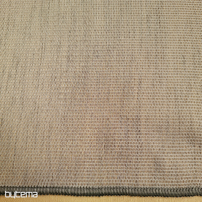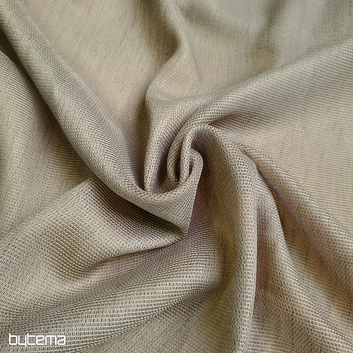 La cortina es suave al tacto, pero densamente tejida con un hilo beige oscuro que crea pequeños cuadrados.