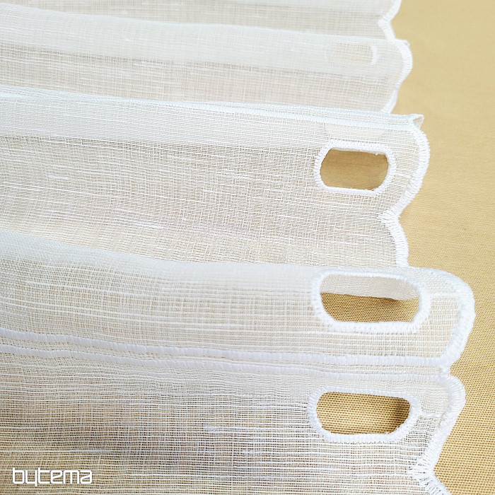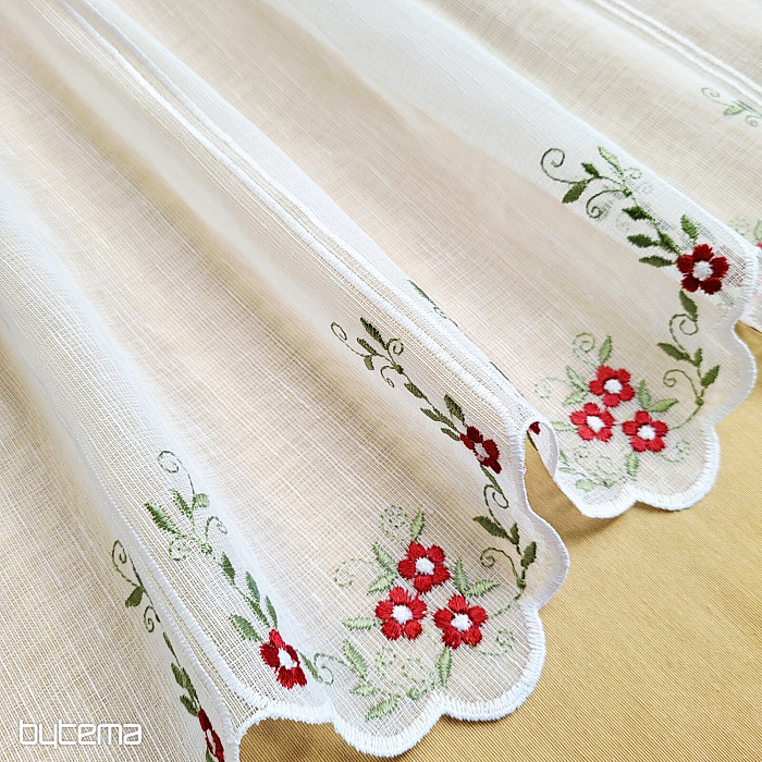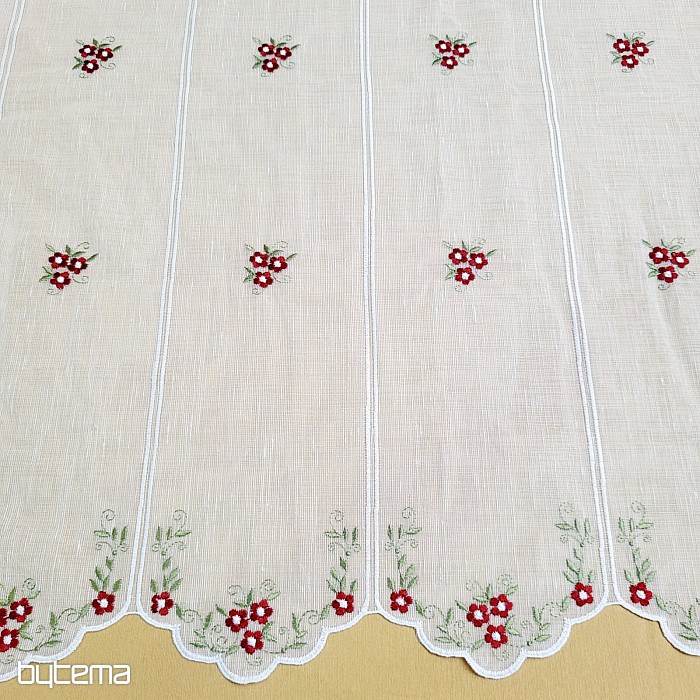 Ofrecemos la cortina en tres alturas: 60 cm y 90 cm. La cortina tiene una flor bordada en el centro del panel.