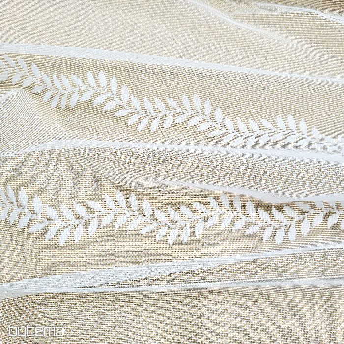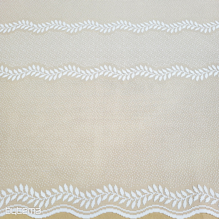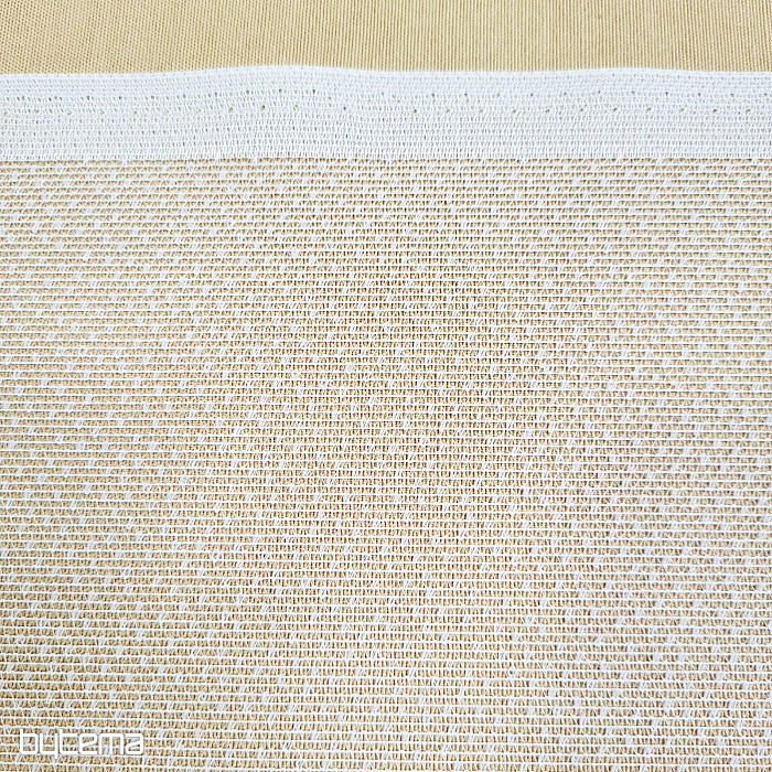 Hermosa cortina moderna de jacquard con un delicado borde. La parte inferior está forrada con un estampado y el resto de la cortina es lisa.
