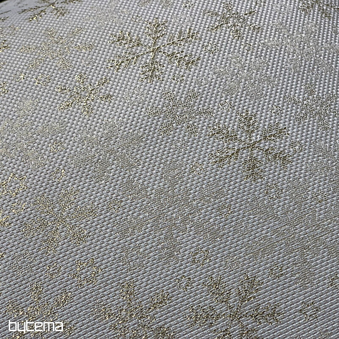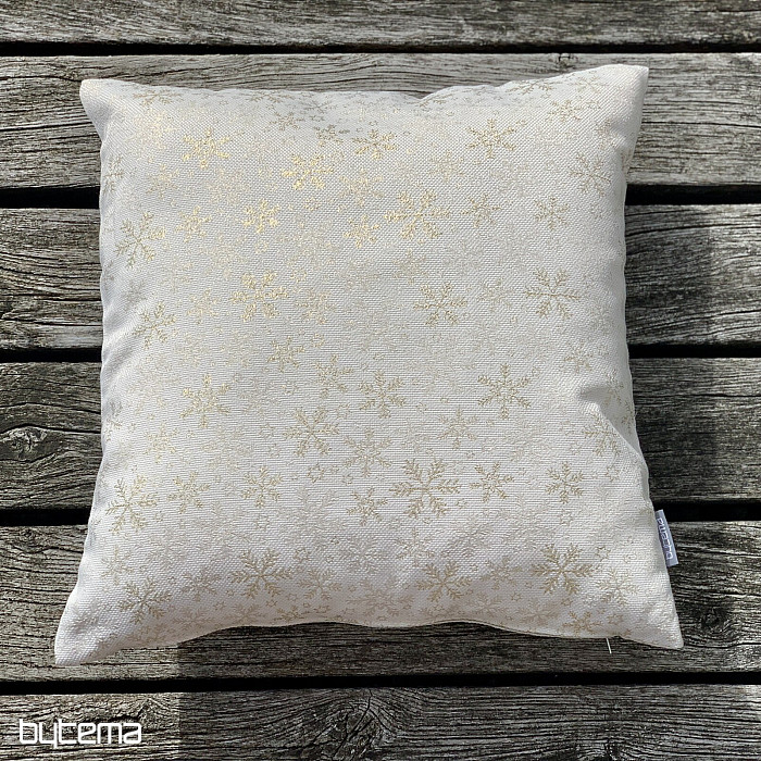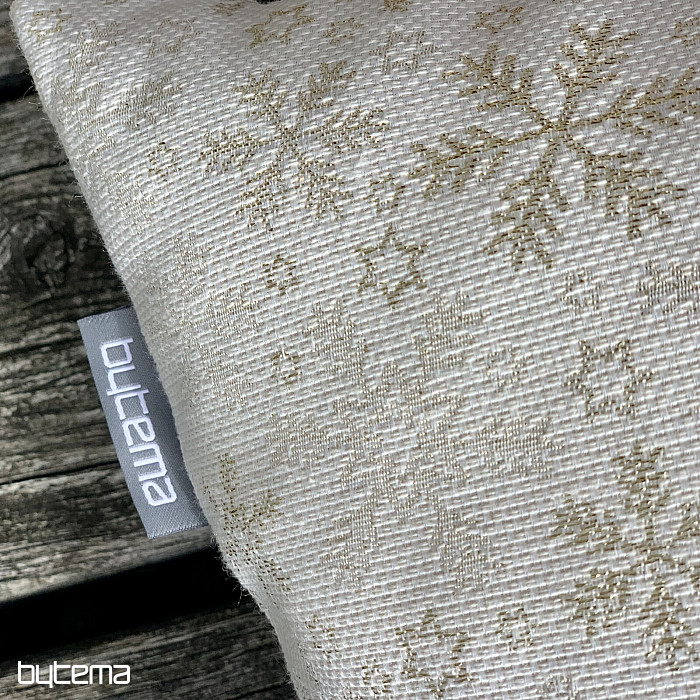 Las fundas decorativas navideñas con un diseño de hermosos copos de nieve grandes y pequeños dorados sobre un fondo crema serán una decoración mágica en tu hogar.