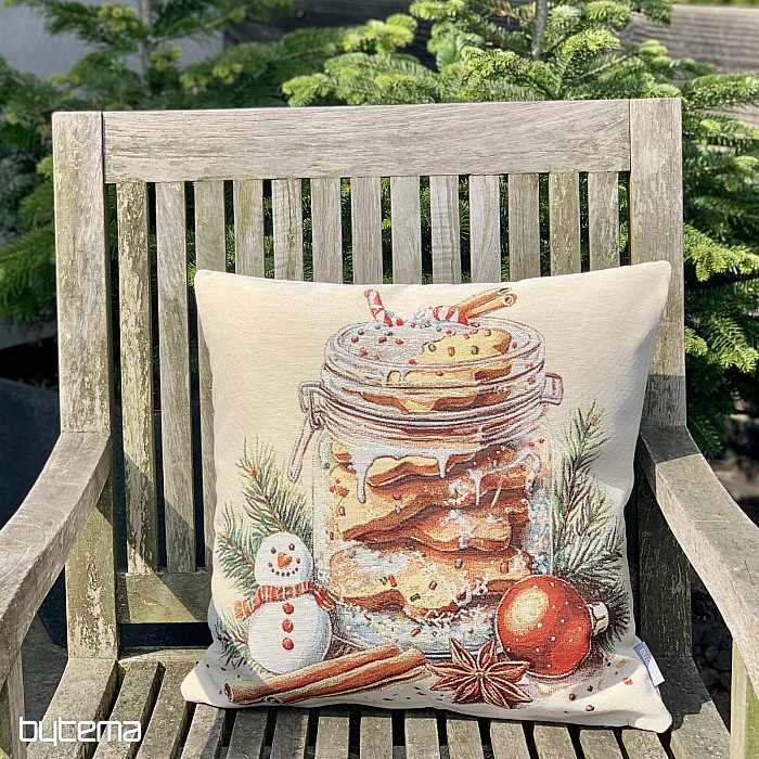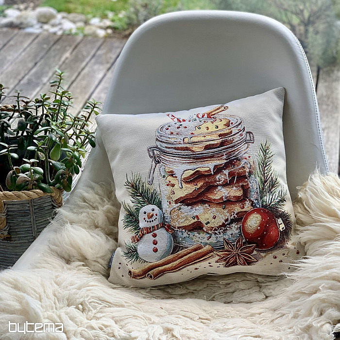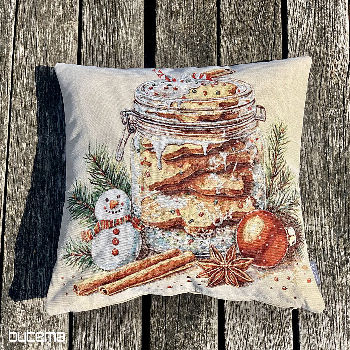 Una funda de tapiz con galletas de jengibre colocada en un vaso transparente evocará el aroma y el sabor de las fiestas navideñas.