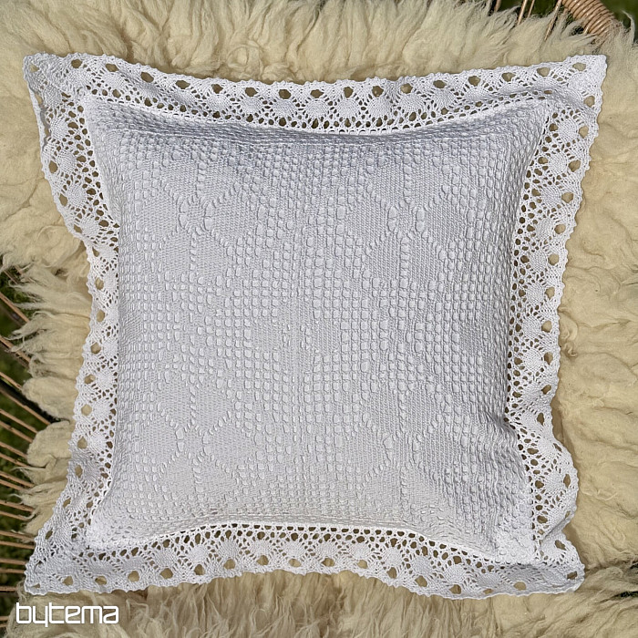 Funda de almohada decorativa con FLORES DE ENCAJE blancas - 40 x 40 cm