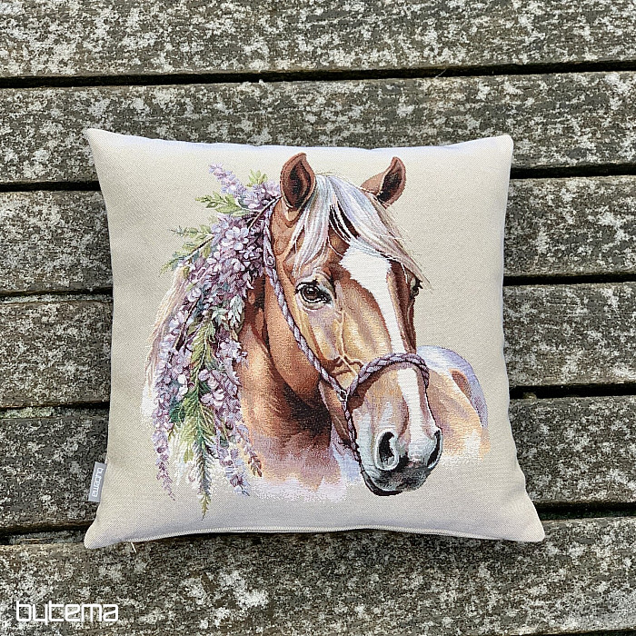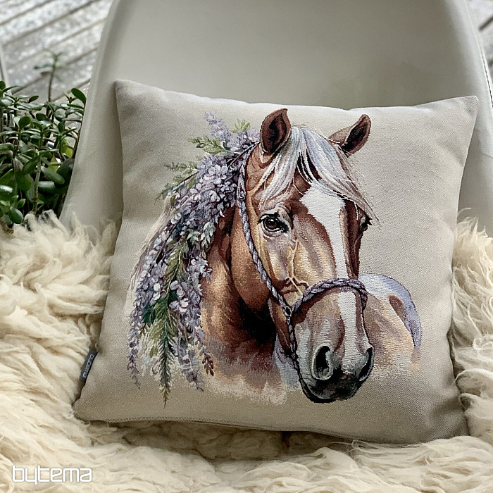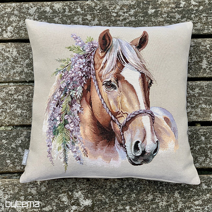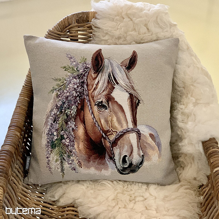 Funda de almohada tapizada con un romántico caballo. Una decoración preciosa y delicada para los amantes de los caballos. Ideal como regalo.