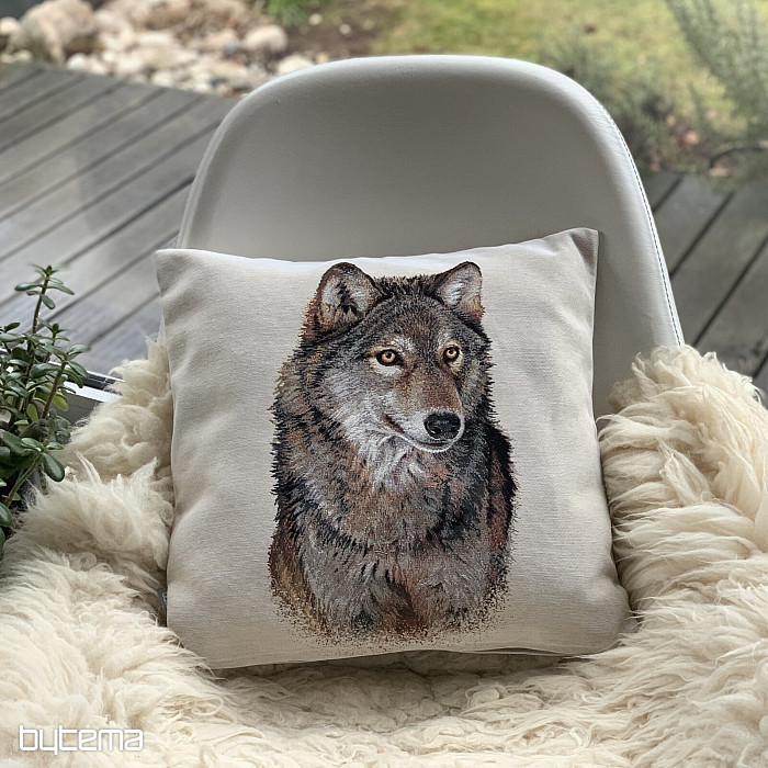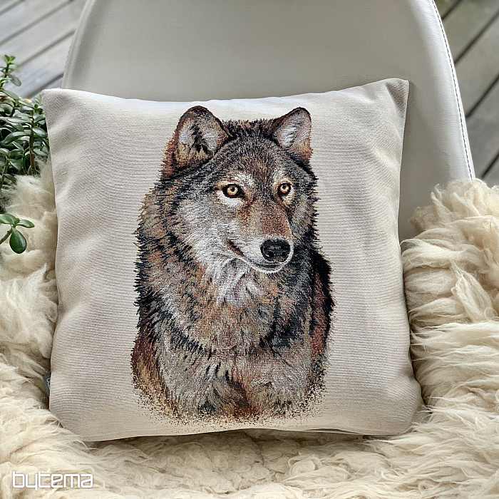 Funda de almohada tapizada con un lobo salvaje. ¡Su mirada te cautivará!