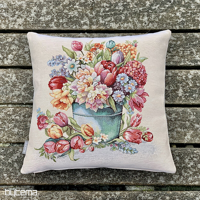 Una funda de almohada tapiz llena de colores y flores primaverales decorará cualquier estancia de tu hogar.