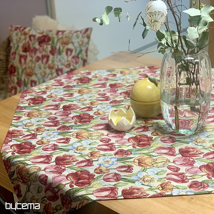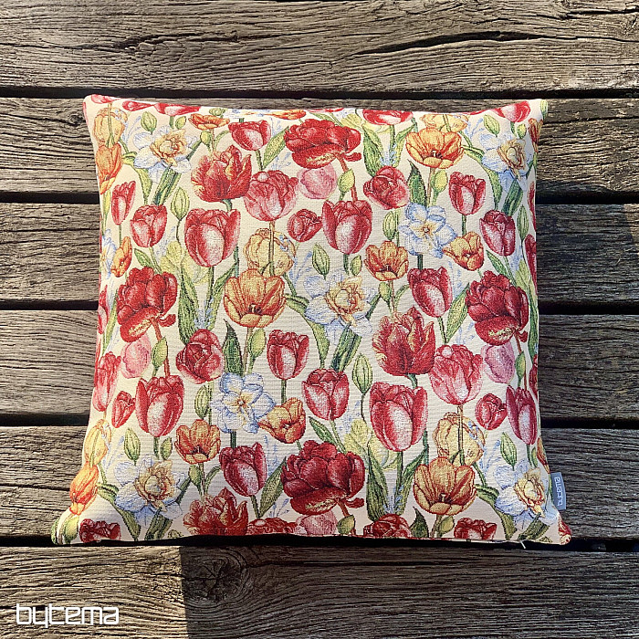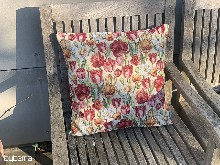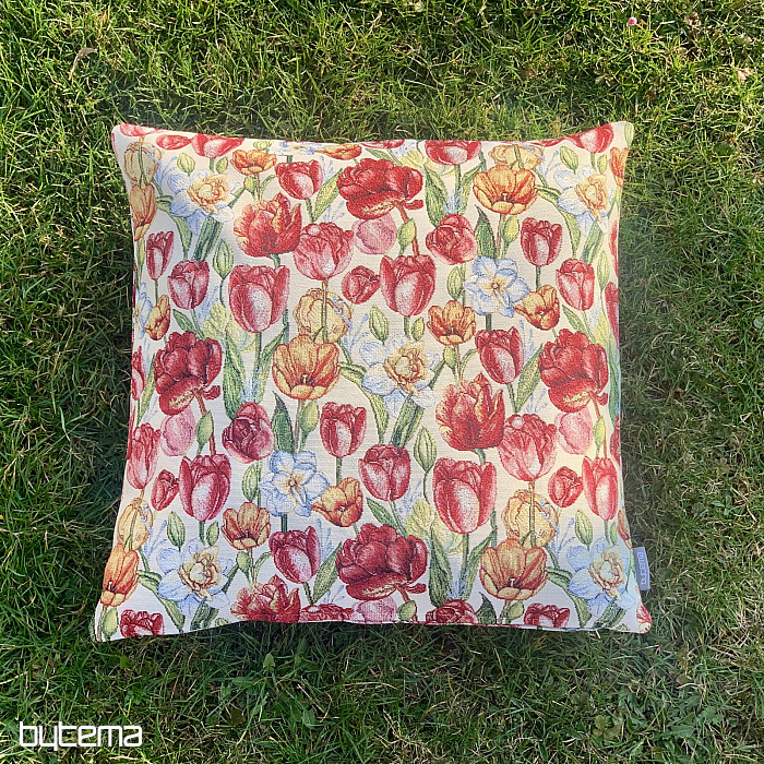 Una preciosa funda de tapiz con flores primaverales de tulipanes y narcisos. Una maravillosa explosión de color y la llegada de la primavera a tu hogar.