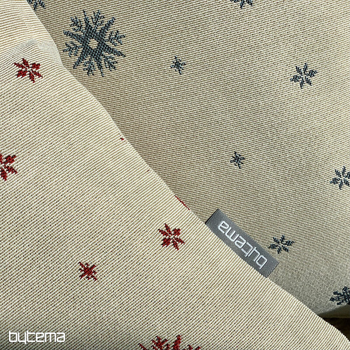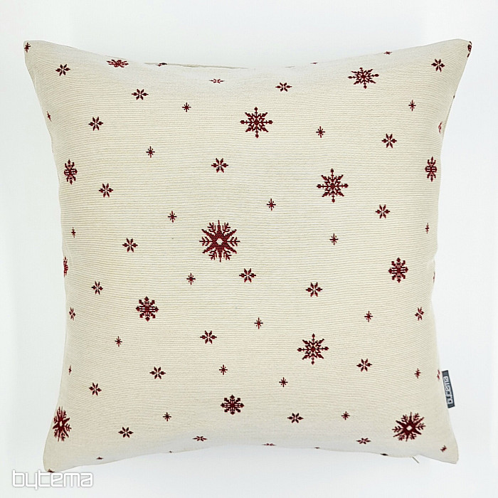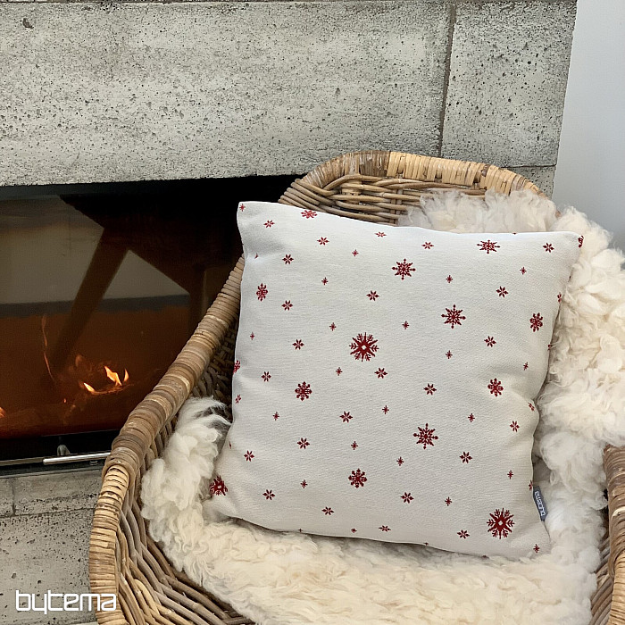 Una funda de tapiz con un diseño de delicados copos de nieve rojos traerá verdadera magia navideña a tu hogar.