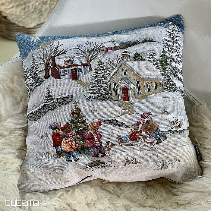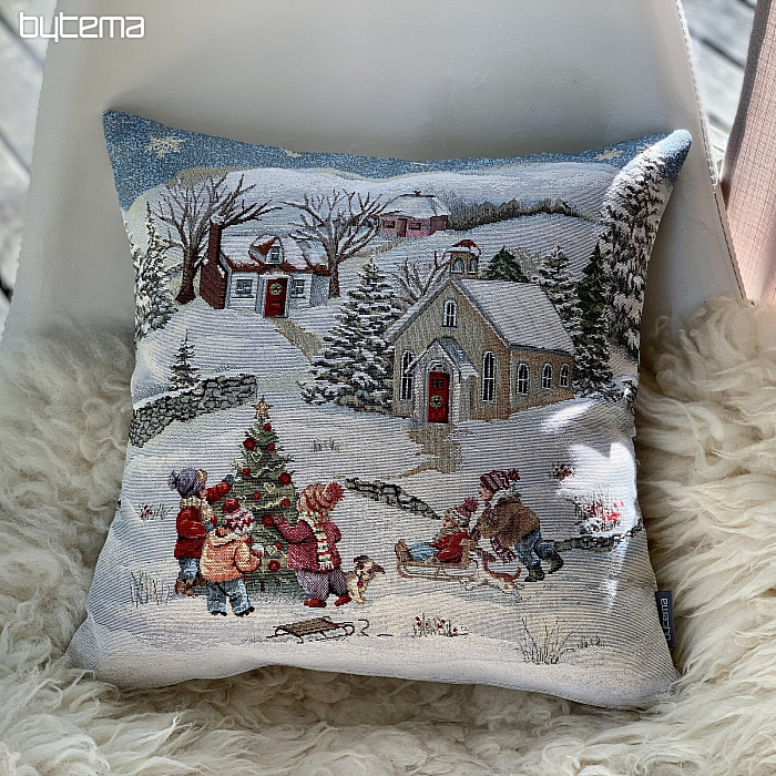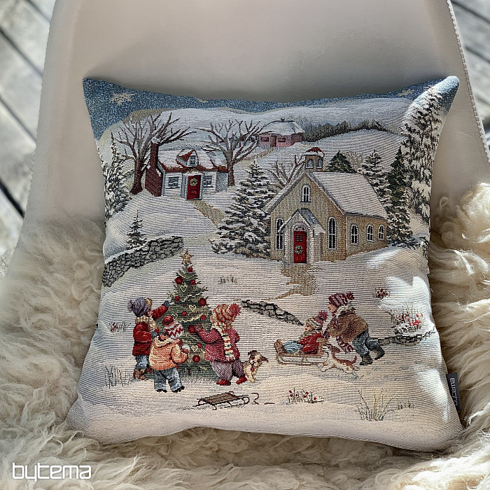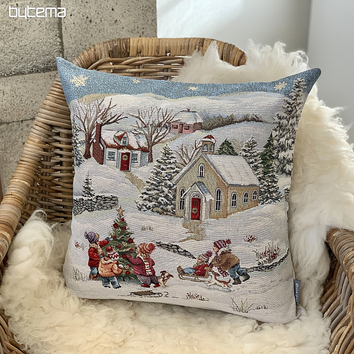Una funda de tapiz lisa con motivo invernal te infundirá alegría infantil en Navidad.