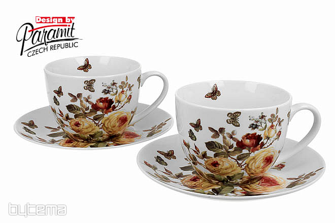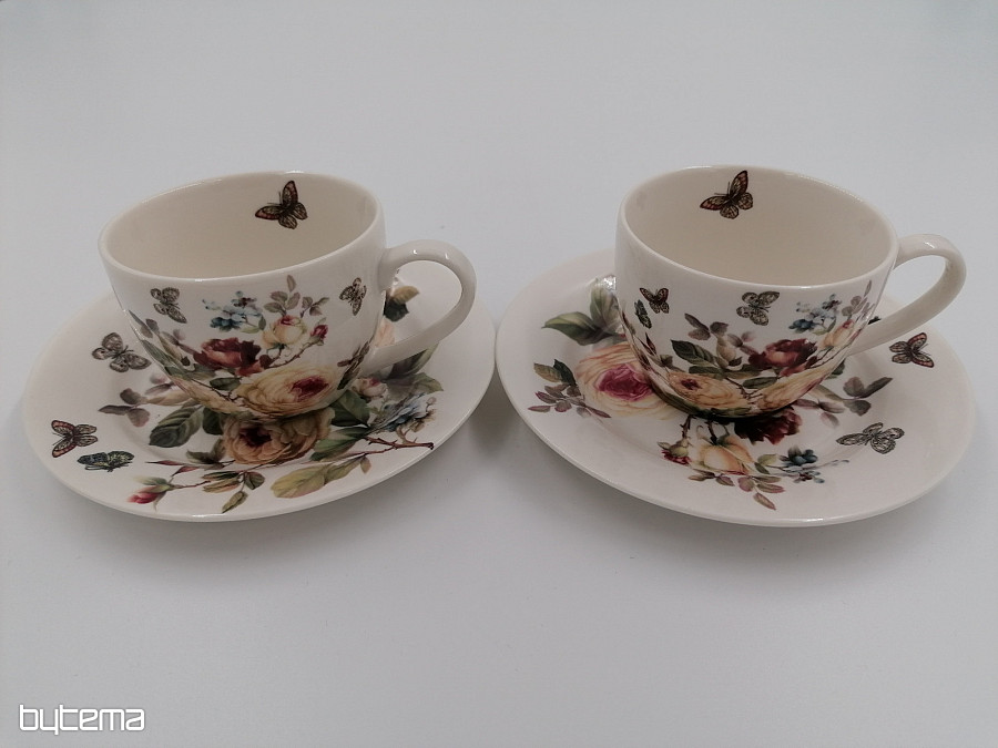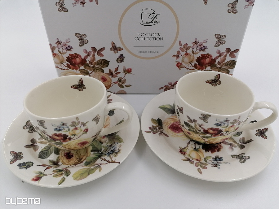 Dos tazas de espresso de 95 ml y sus platillos forman un hermoso par, empaquetados en una caja impresa, acolchada y cubierta con satén blanco.