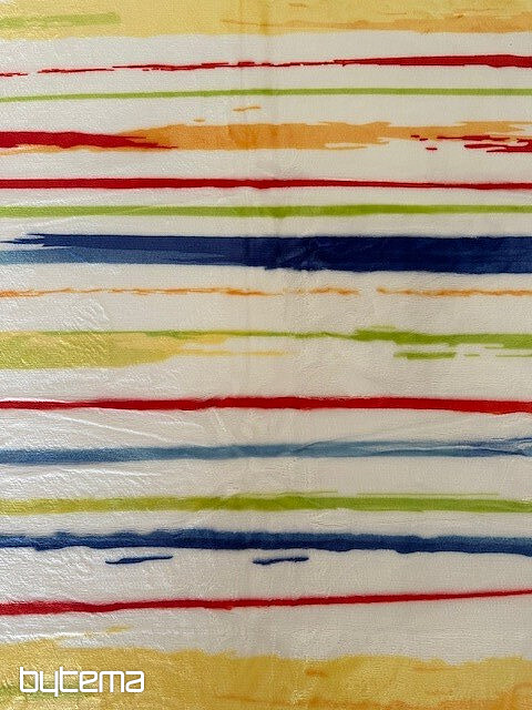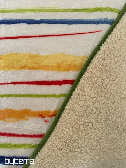 La parte superior de la manta es de microfranela, con un estampado colorido, y la parte inferior de la manta es de vellón para brindar calidez.