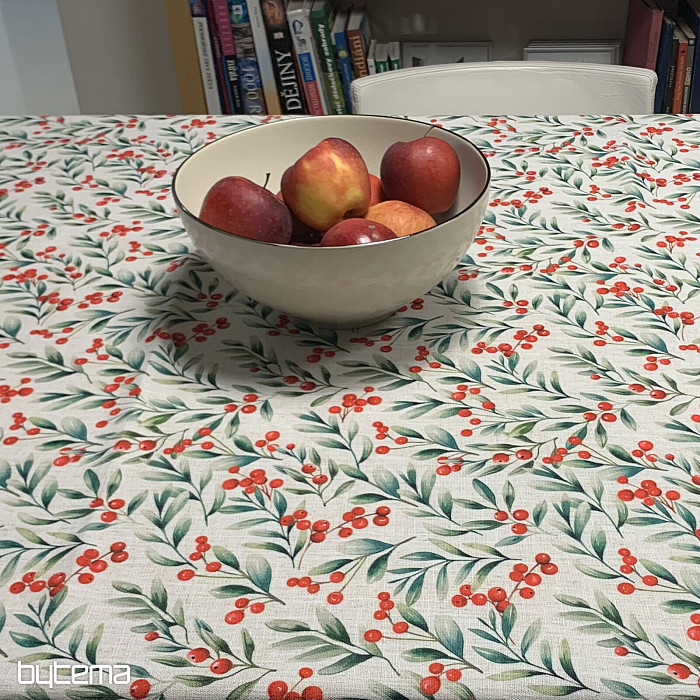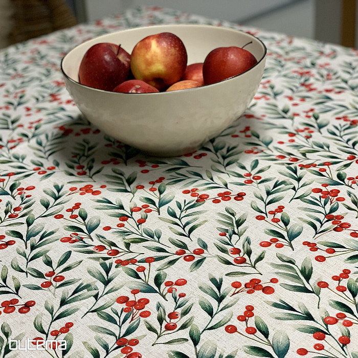 Un precioso mantel de tamaño inusual con bayas rojas es perfecto para la Navidad. Pero decorará tus habitaciones no solo durante estas fechas.