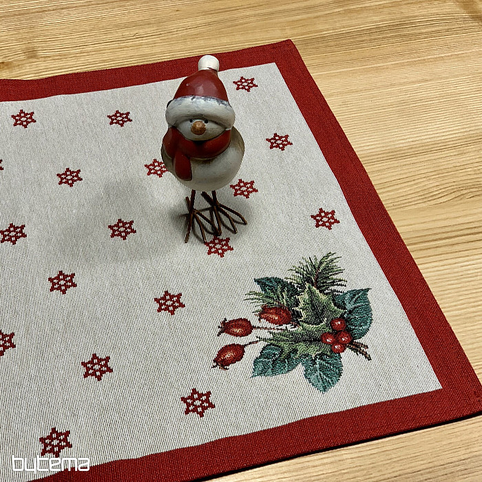El mantel individual de tapiz complementará maravillosamente la combinación de velas navideñas y su decoración navideña será perfecta.