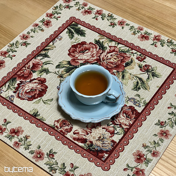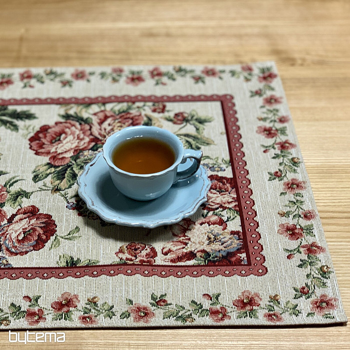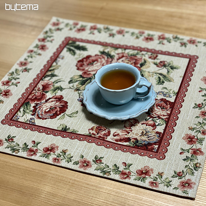 Mantel individual tapiz de espíritu romántico. Una hermosa rosa de flores grandes con bordes de encaje será una hermosa adición a su hogar.