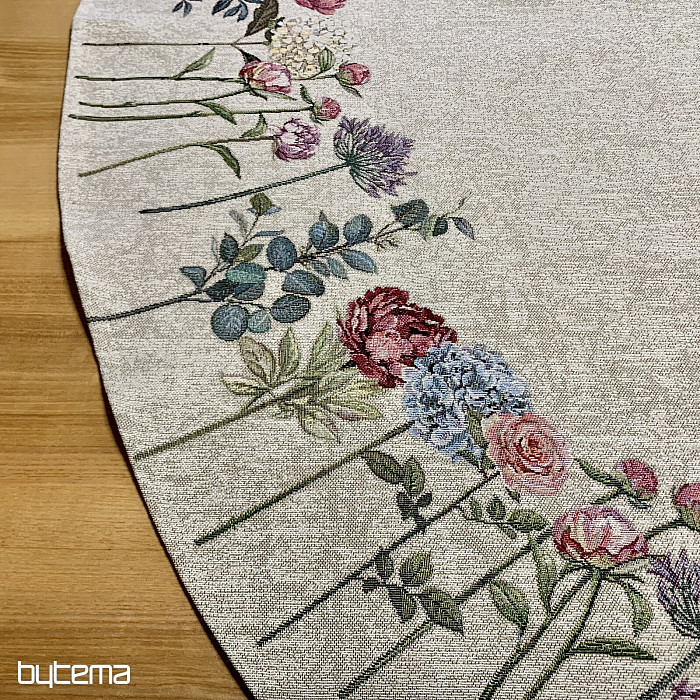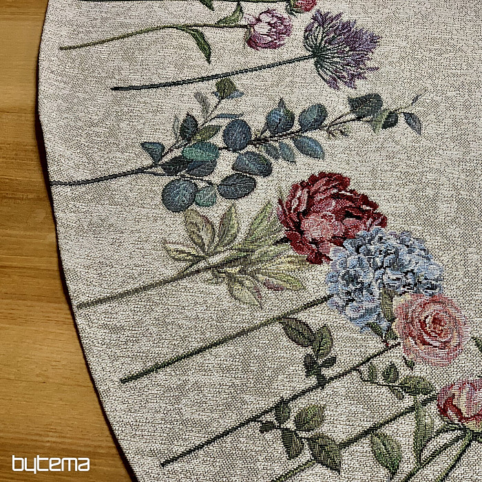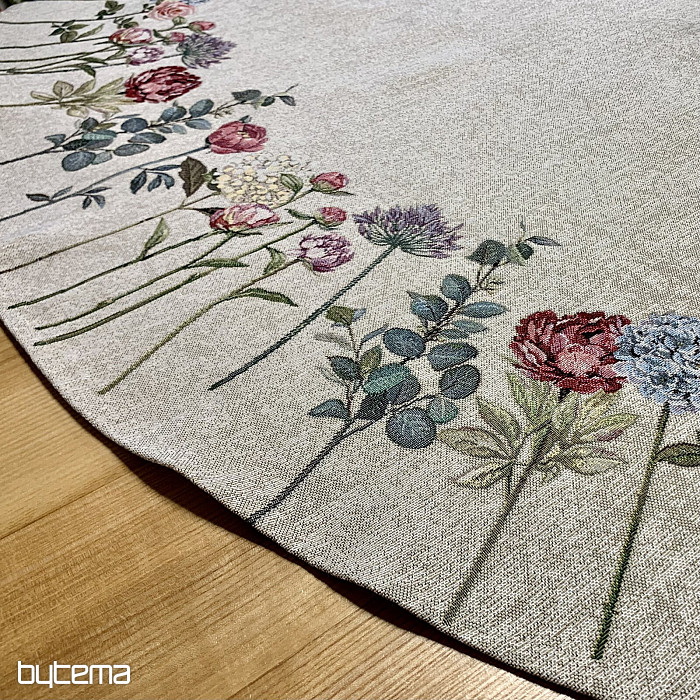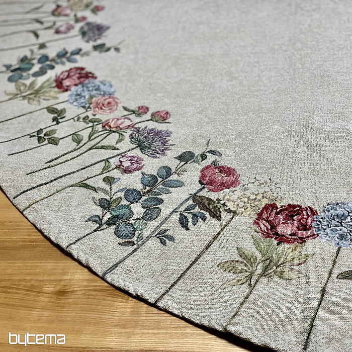 Un precioso mantel de tapiz para mesa redonda con un motivo de peonías y eucalipto será un regalo de lujo no solo para cualquier jardinero.
