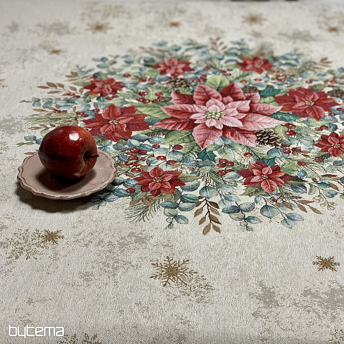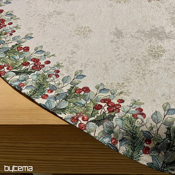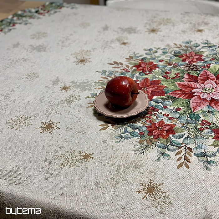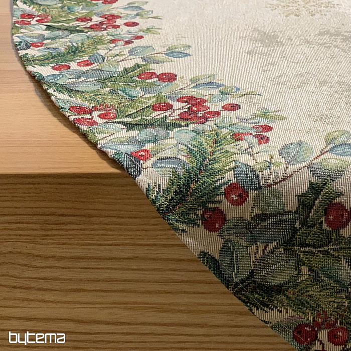 Los manteles redondos de tapiz navideños con un motivo de rosas navideñas serán una hermosa decoración para su mesa navideña.