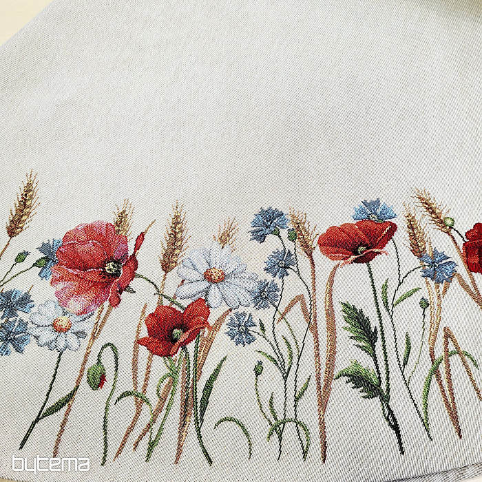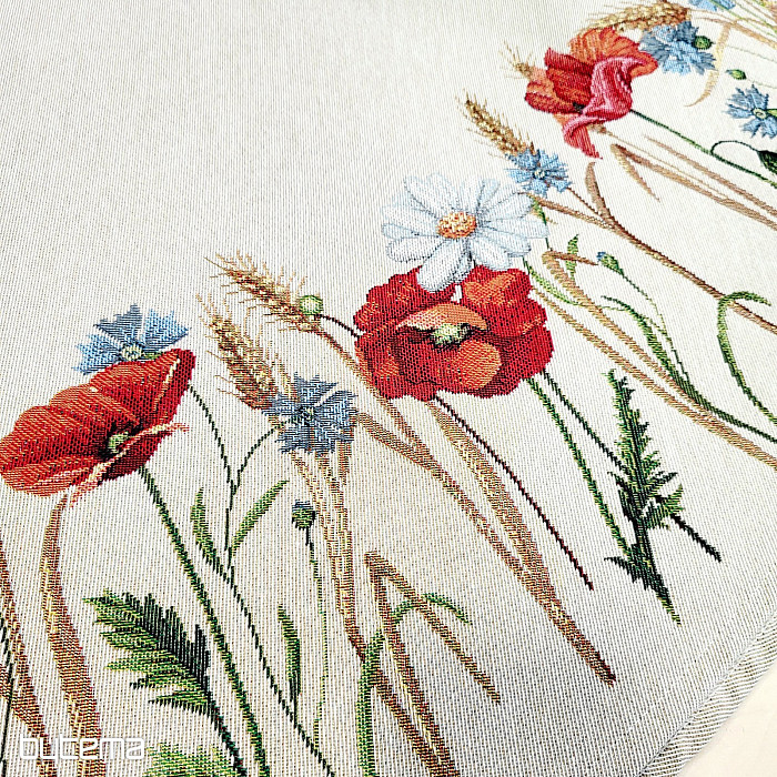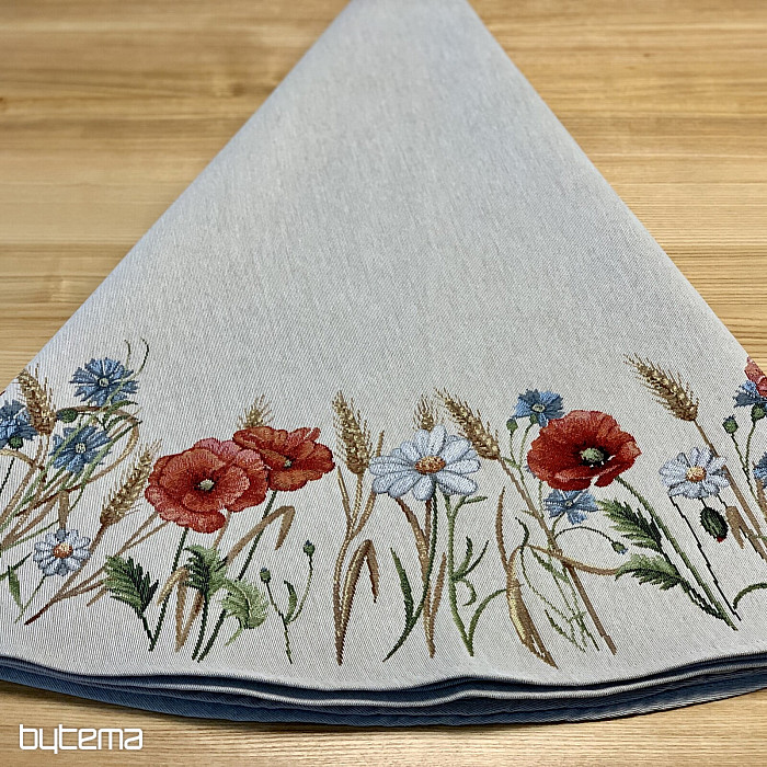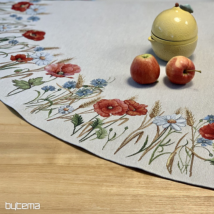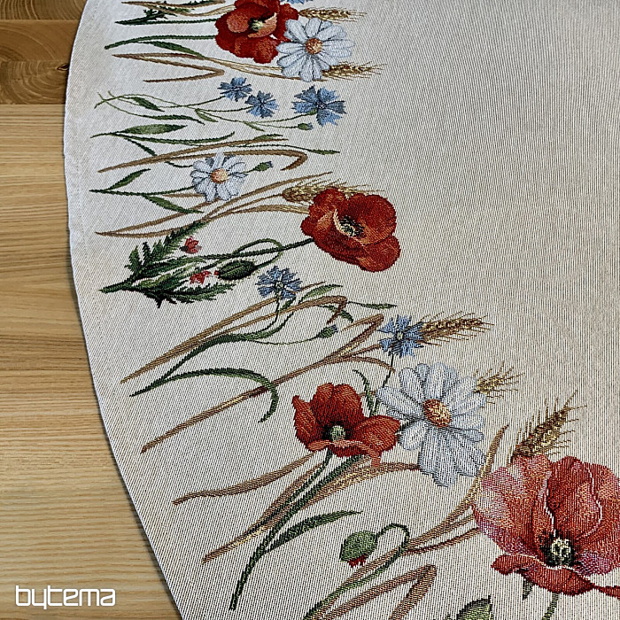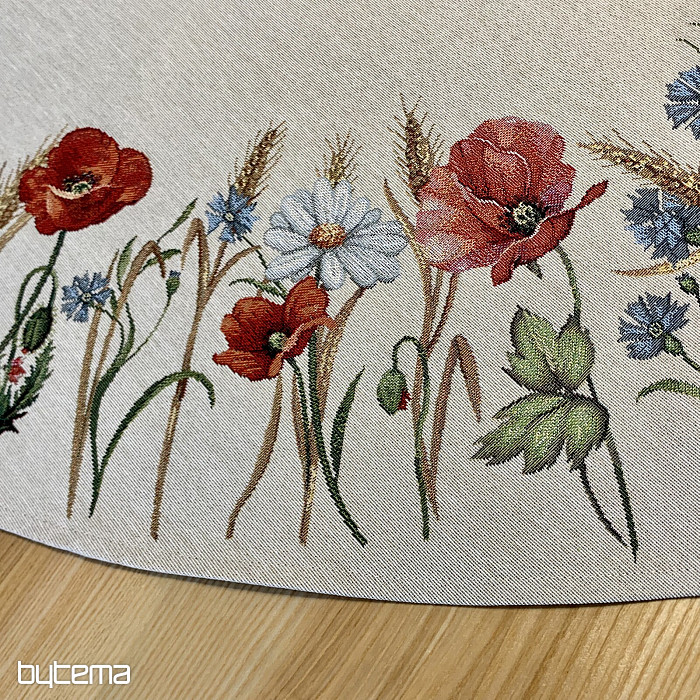 Un hermoso mantel redondo de tapiz resistente con un toque de verano y flores silvestres. La suavidad perfecta para los días de verano en tu mesa.