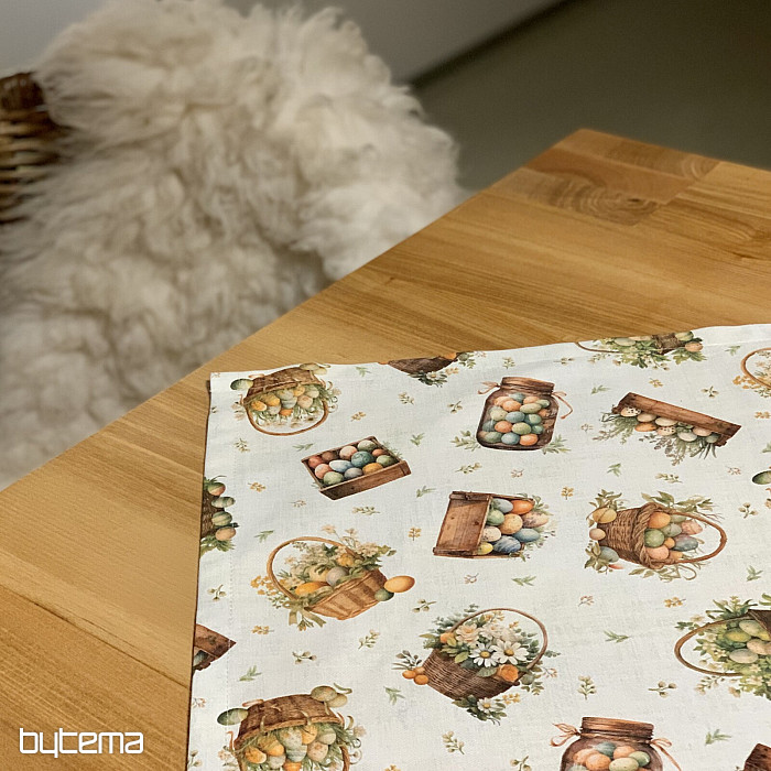 Crea hermosas decoraciones de Pascua a partir de manteles individuales y manteles con este diseño.