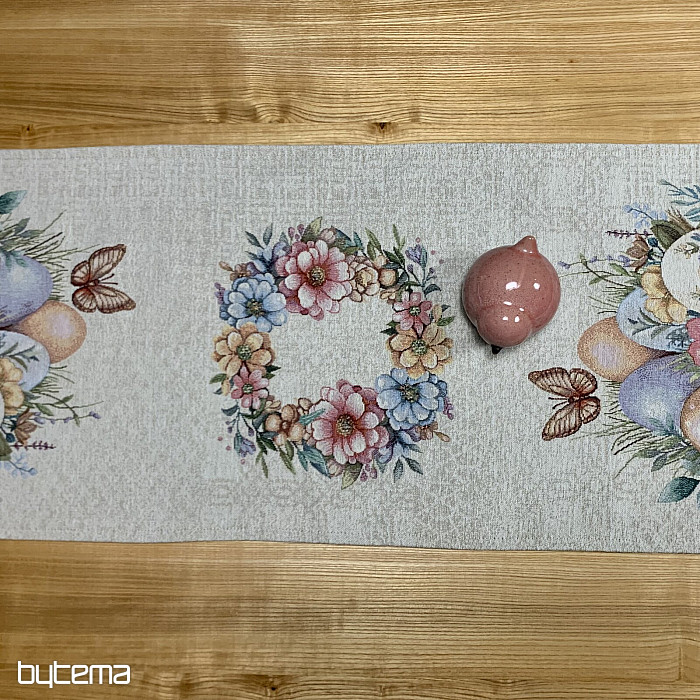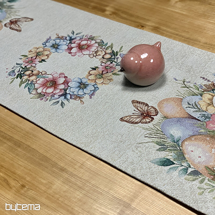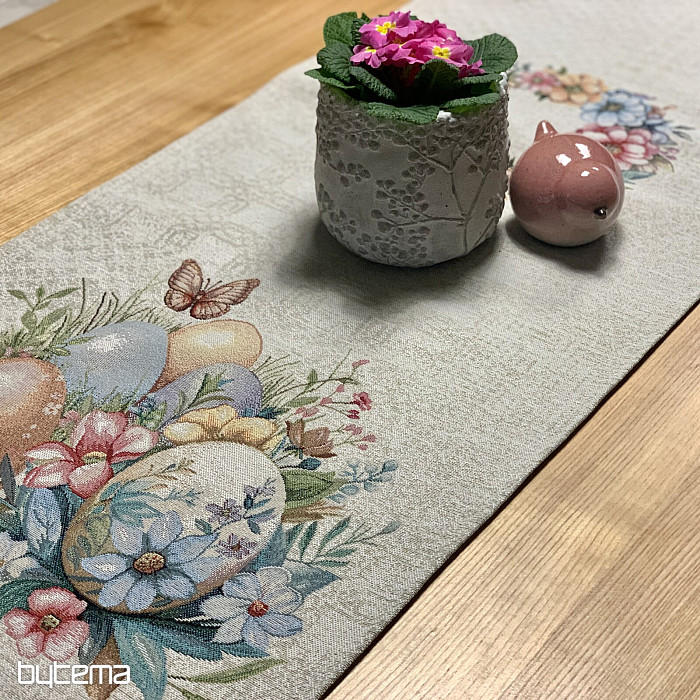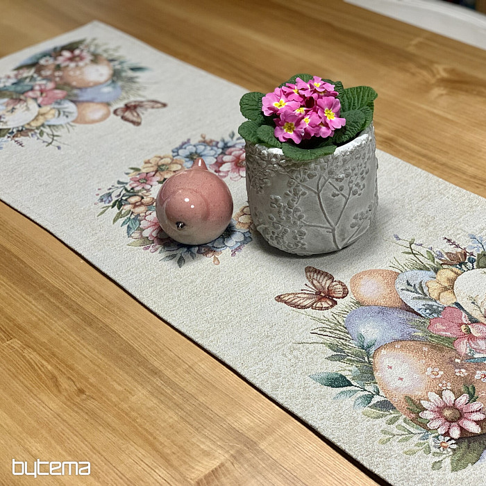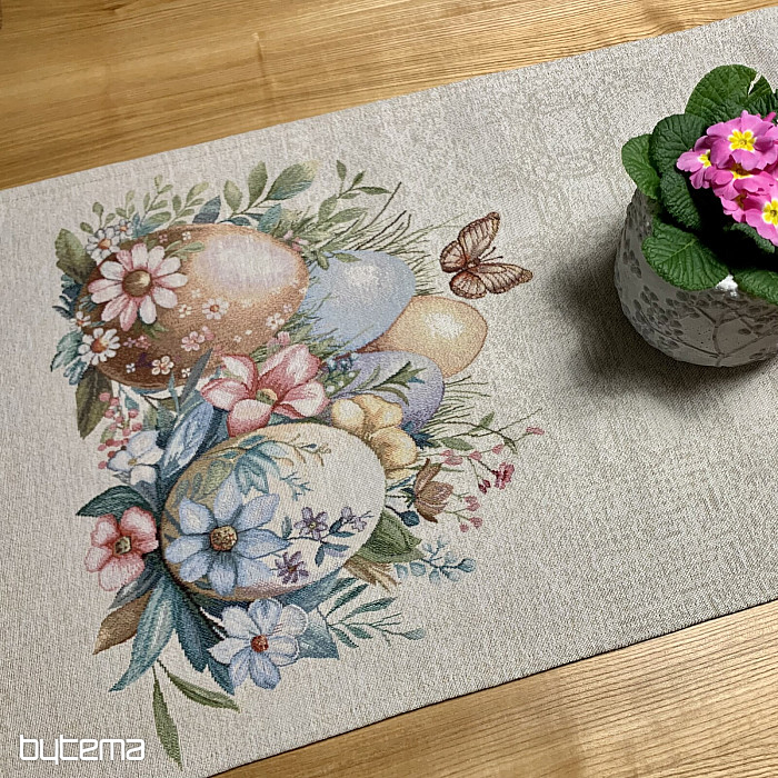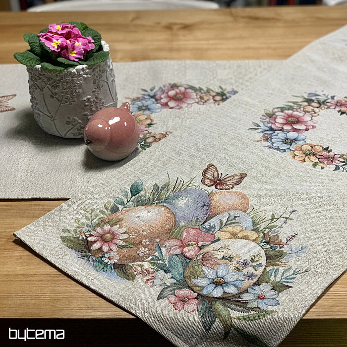 Un mantel y una bufanda tapiz con motivo de Pascua serán un hermoso complemento para tu hogar en esta época.