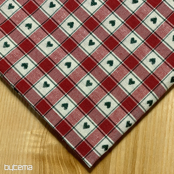 Un mantel y una bufanda decorativos con diseño de cuadros y corazones son perfectos para casas de campo y cabañas de madera.