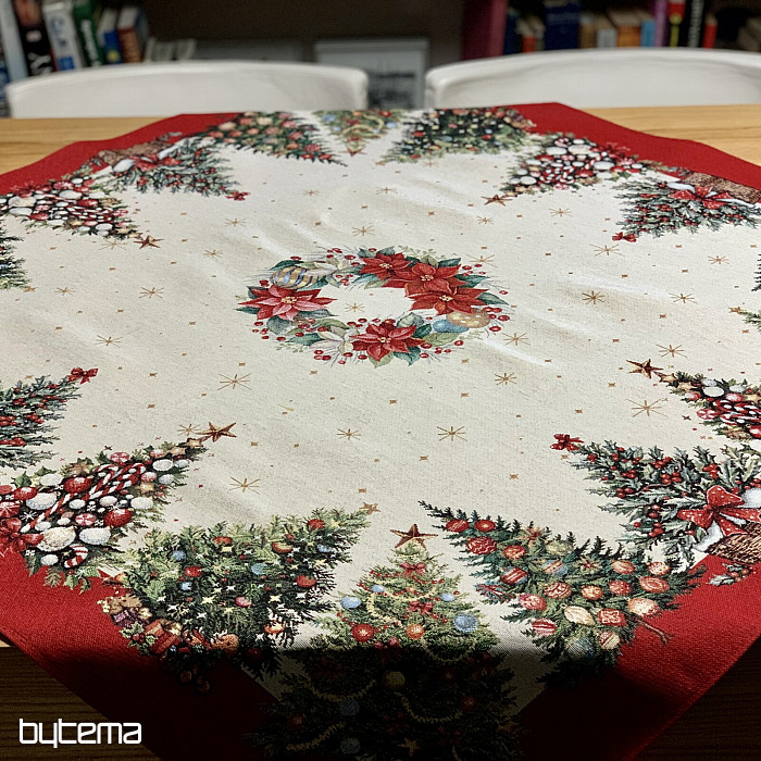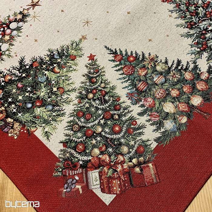 Un mantel y una bufanda tapiz con motivo de árboles de Navidad decorados evocarán un ambiente navideño de cuento de hadas en su hogar.