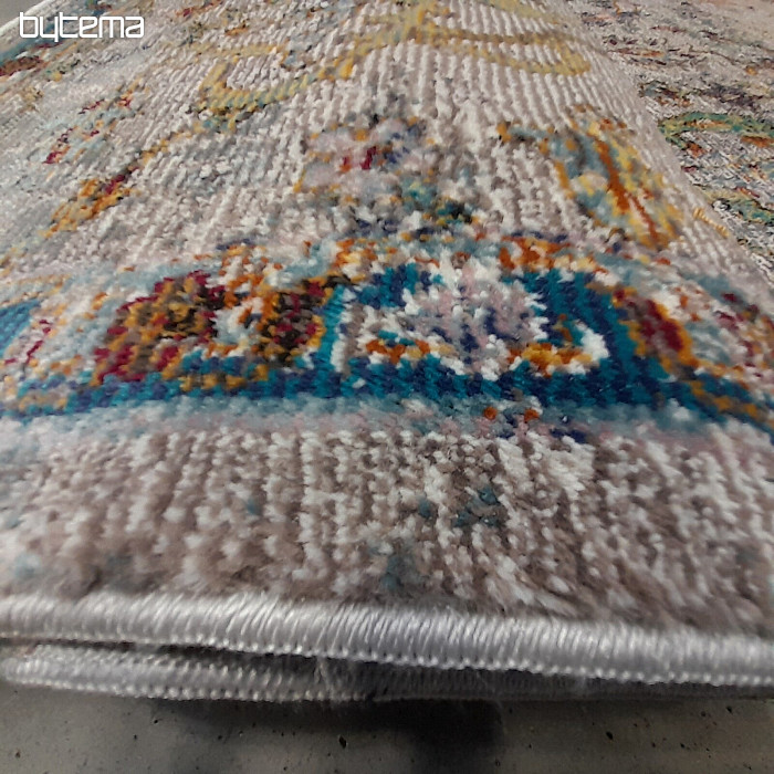 Lujosa alfombra multicolor hecha de material artificial muy agradable . Se puede utilizar en el dormitorio, salón o habitación de los niños. Se caracteriza por tener un pelo bajo y suave.