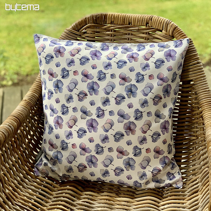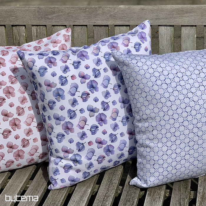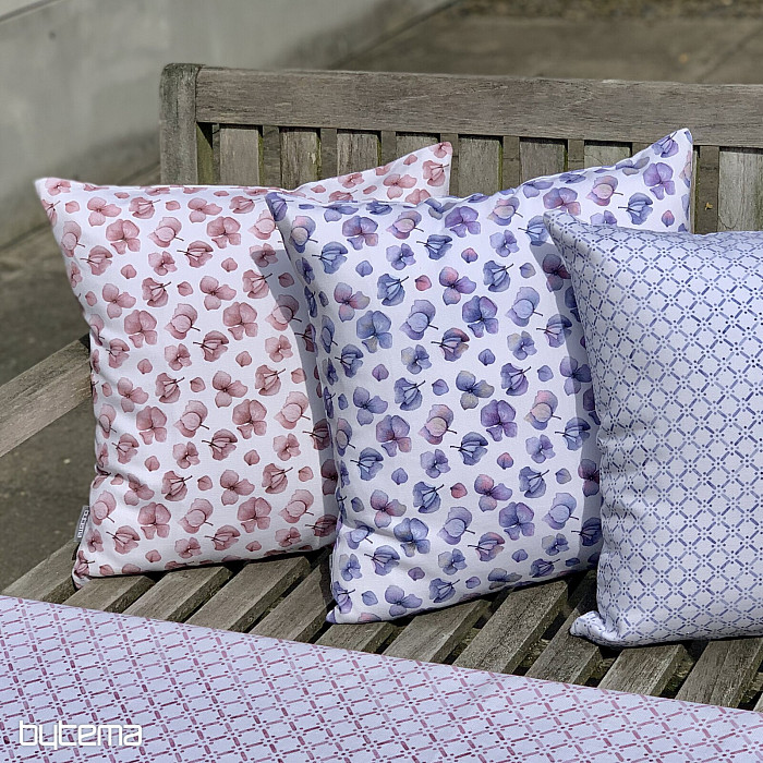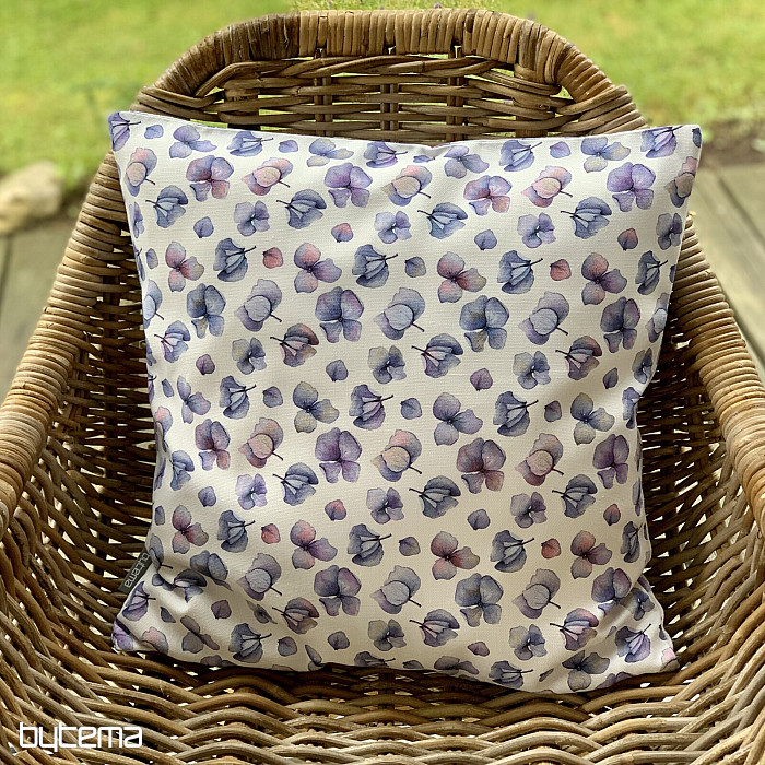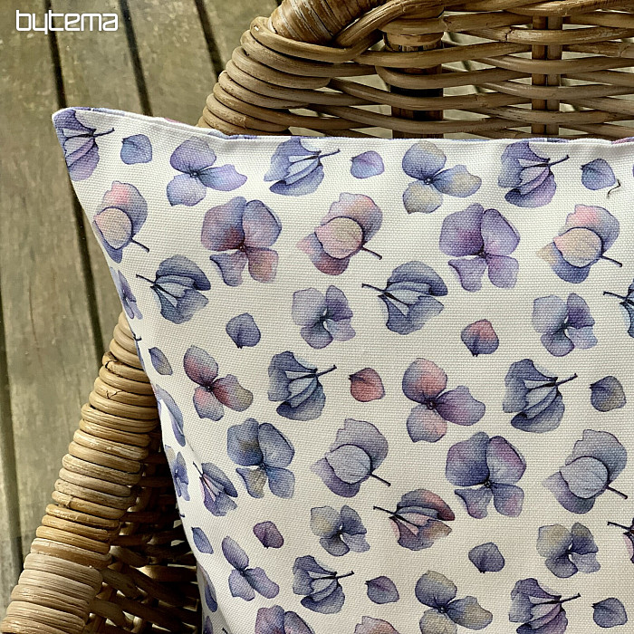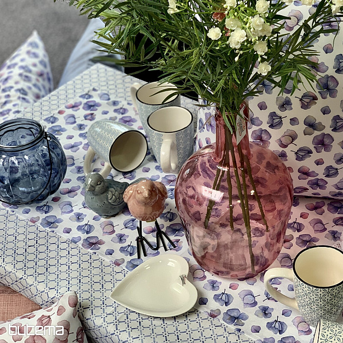Decoración decente con pequeñas flores de hortensias. Encaja estupendamente en combinación con una fina rejilla en color azul, creando juntos una preciosa colección de cojines, manteles y bufandas . Infundirá a su hogar romance y un ambiente agradable.