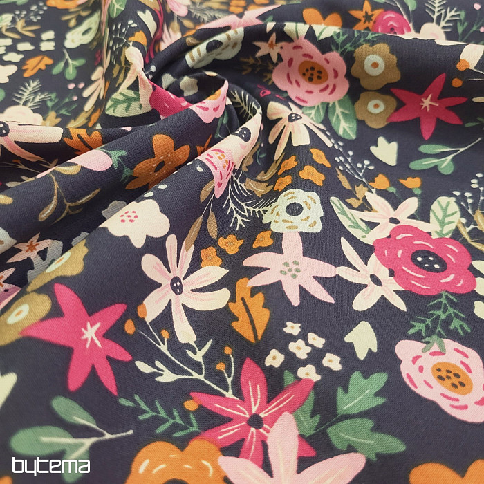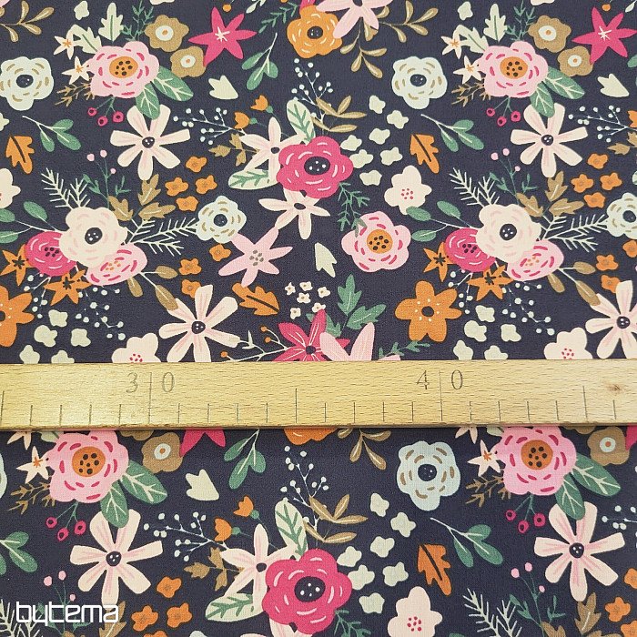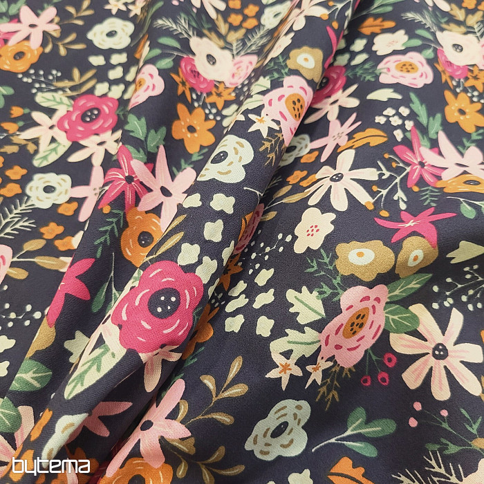 Tela de algodón llena de flores florecientes.