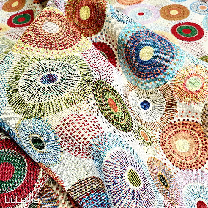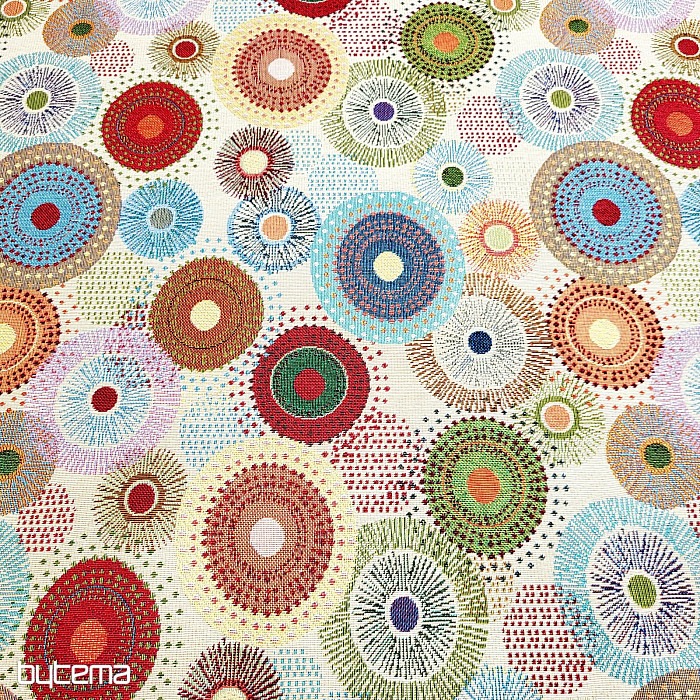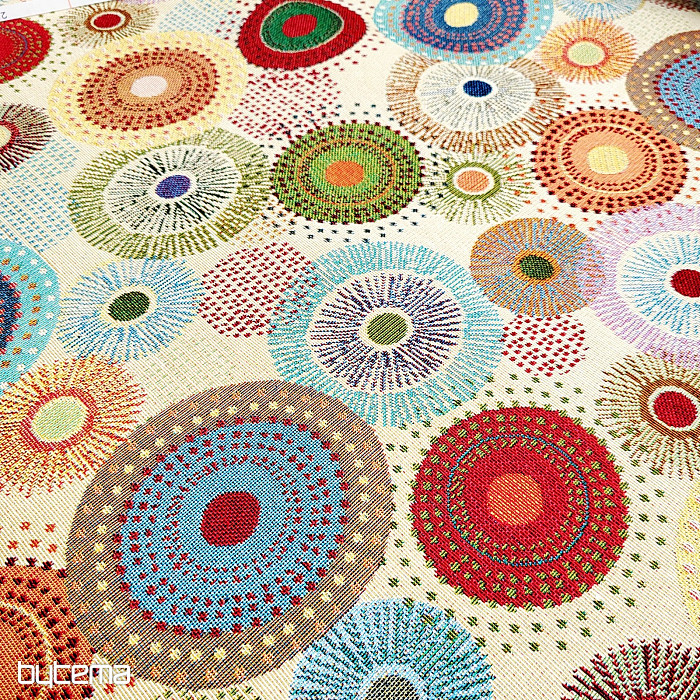 La tela de tapiz con coloridos diseños de mandalas es nuestra nueva incorporación a la tienda. Los colores sutiles pero vibrantes le dan un toque de elegancia a la tela.