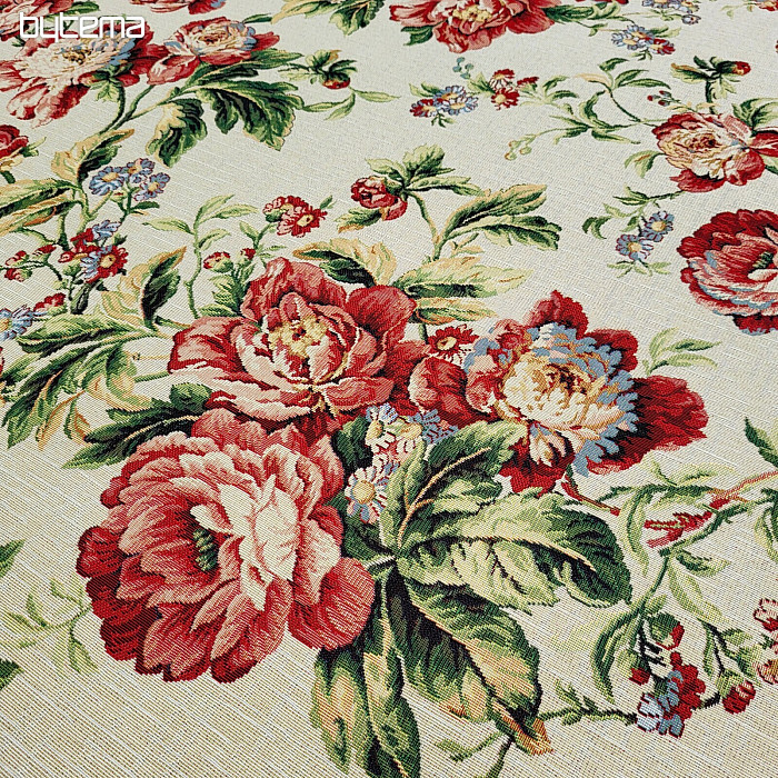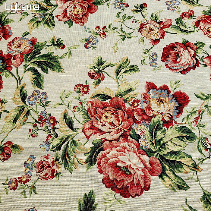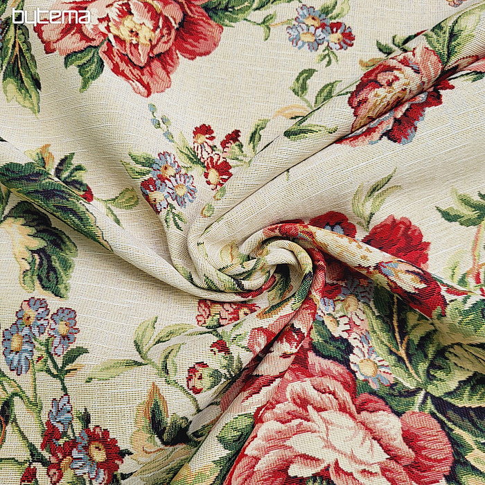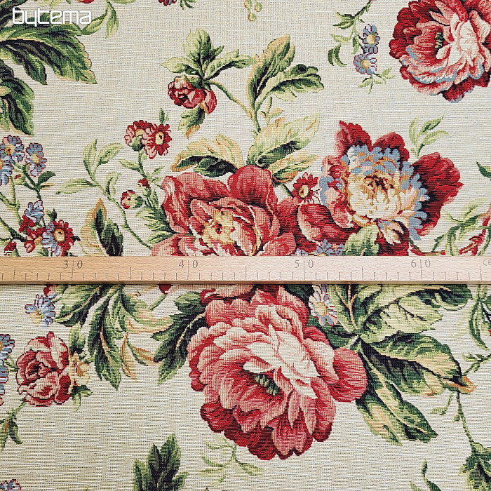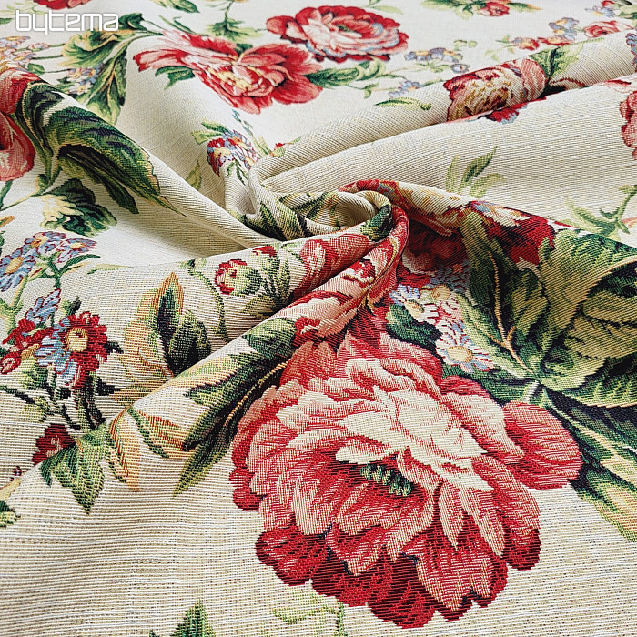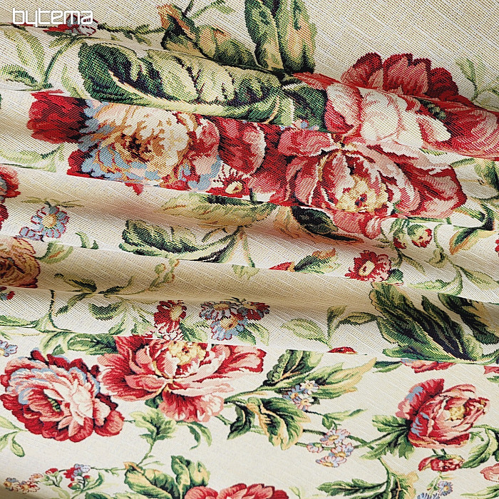 ROSAS GRANDES sobre fondo CREMA es una hermosa, moderna, maravillosa novedad entre los tapices. Un espectáculo maravilloso que cautiva en todo momento. Por eso, no tengas miedo de utilizar este tejido para decoración, para almohadas, cortinas, pero también para trabajos ligeros de tapicería.