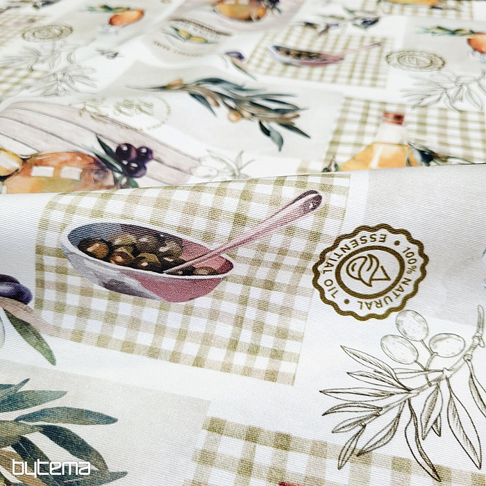 La tela decorativa con motivo de oliva tiene un aspecto fresco y mediterráneo y es adecuada para la cocina, el comedor o las decoraciones de verano.