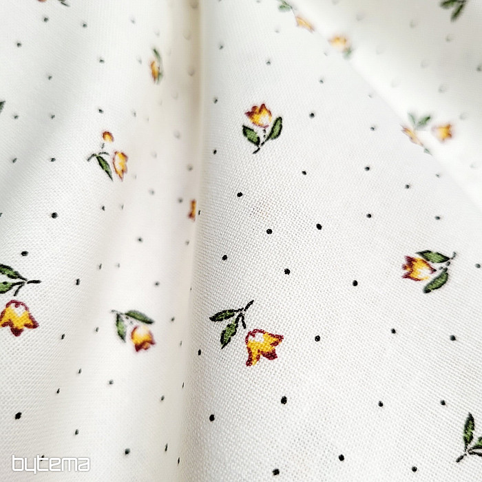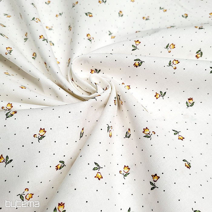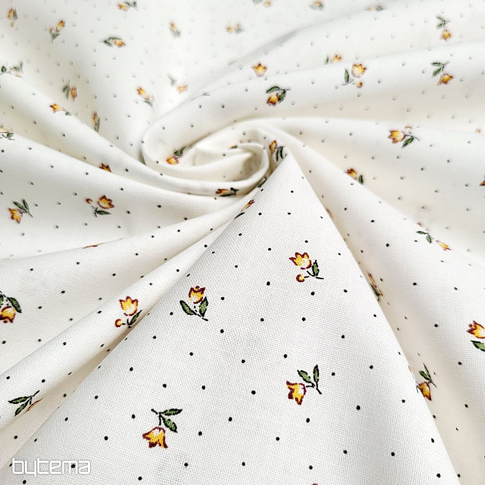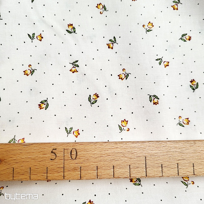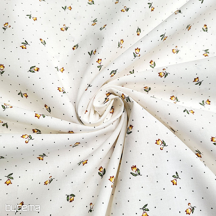 La tela de algodón con una delicada y diminuta flor de color amarillo parduzco será perfecta para tu habitación.