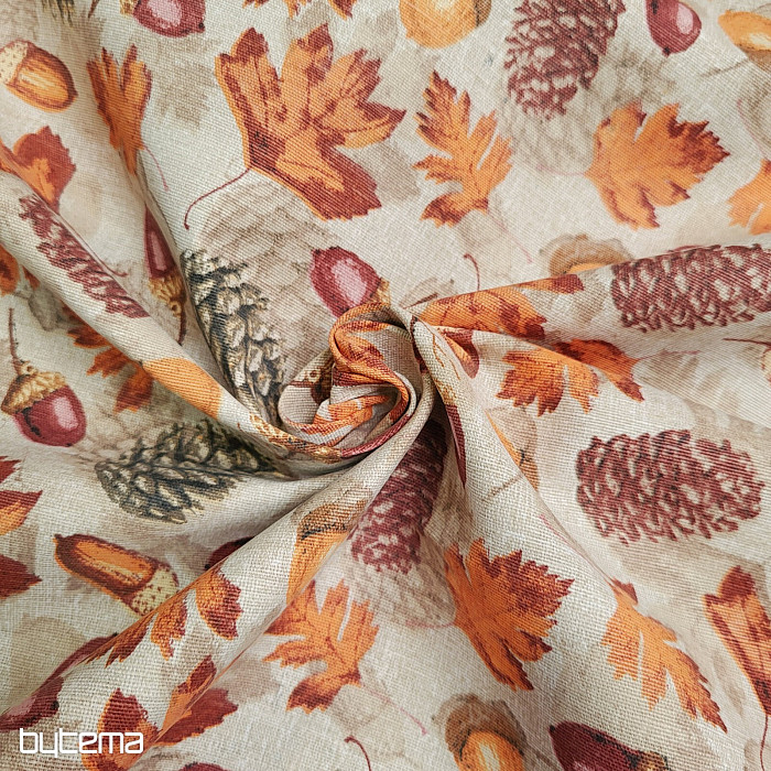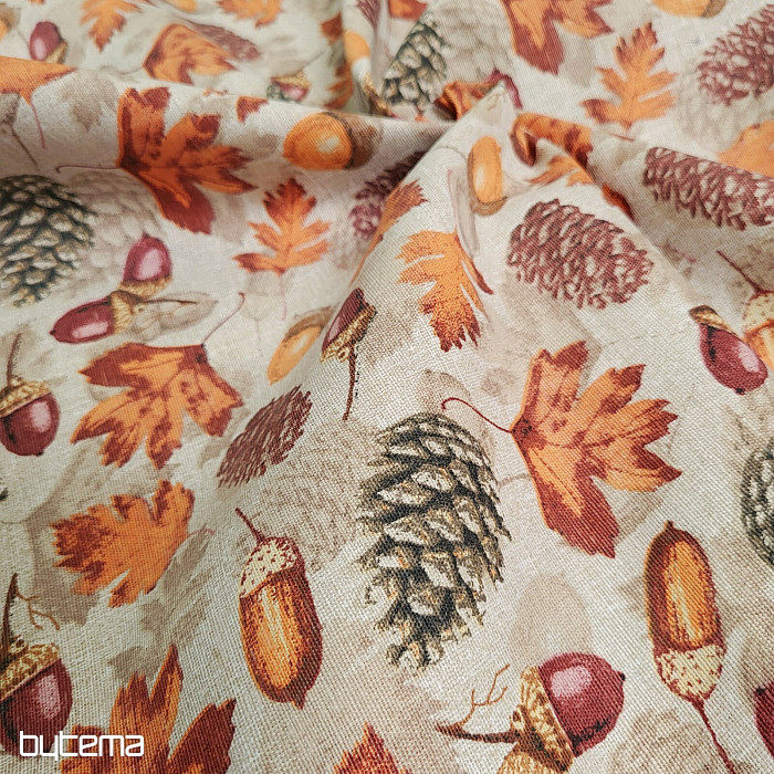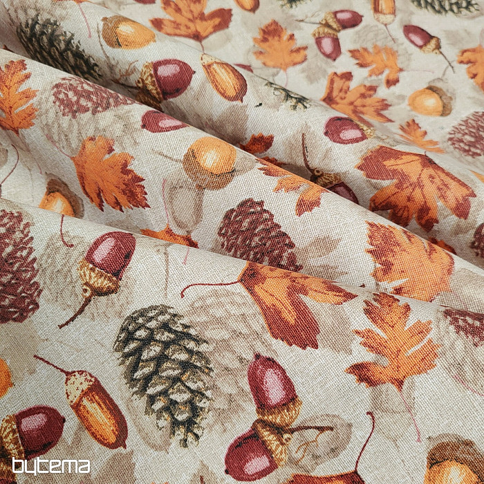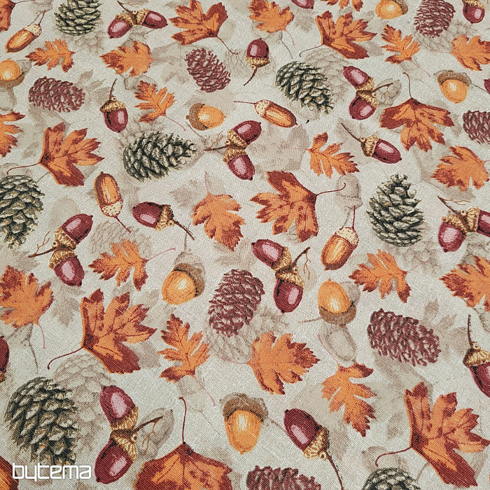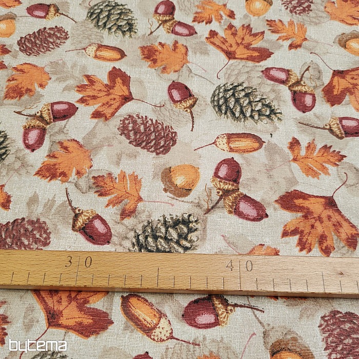 La tela decorativa otoñal repleta de frutos del bosque deleitará la vista de cualquier habitante de una casa de campo o de un hogar.