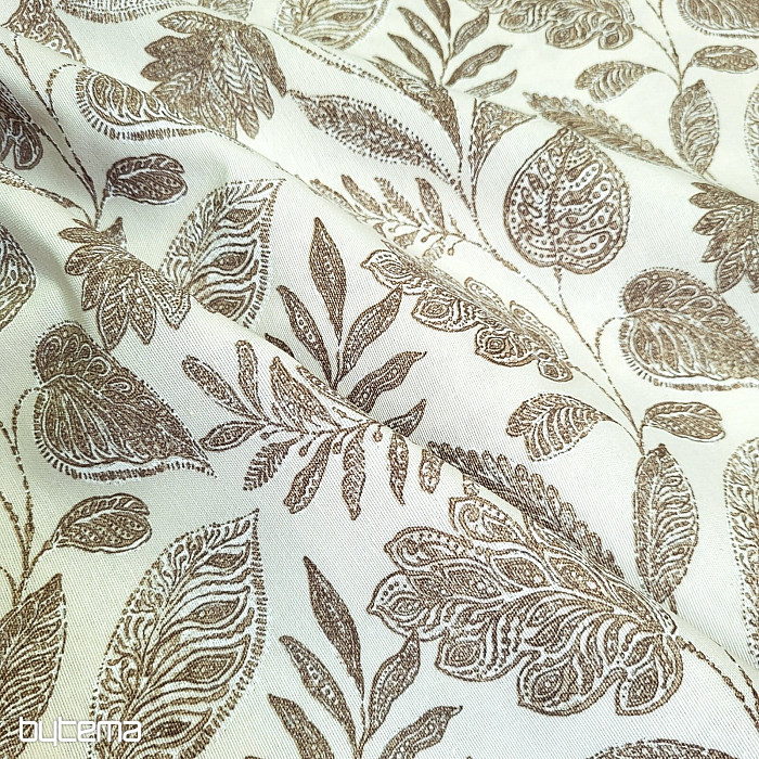 Tela decorativa con grandes hojas de diferentes tipos.
