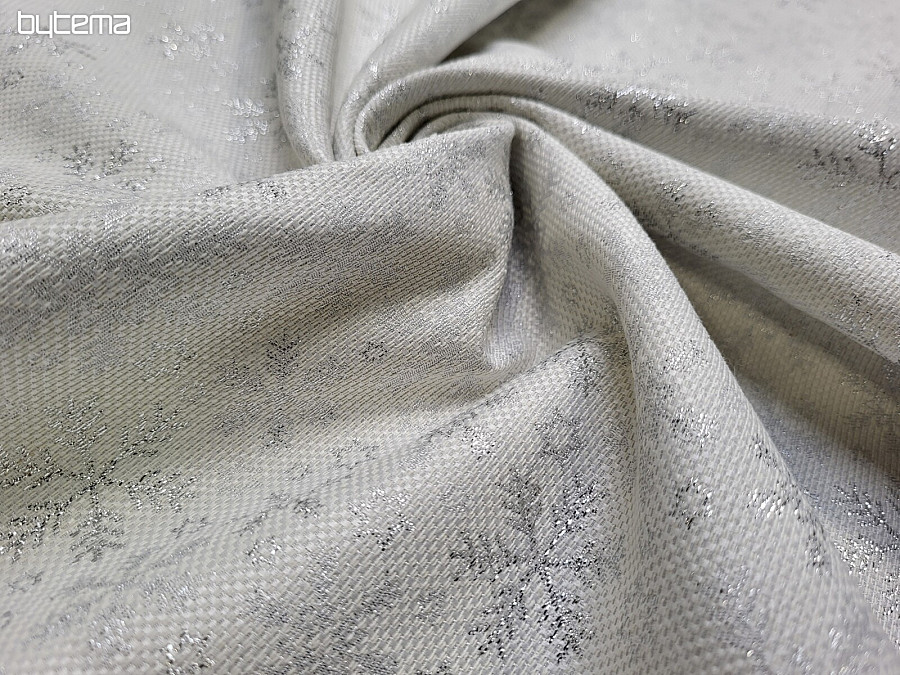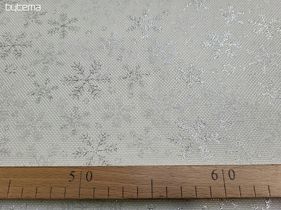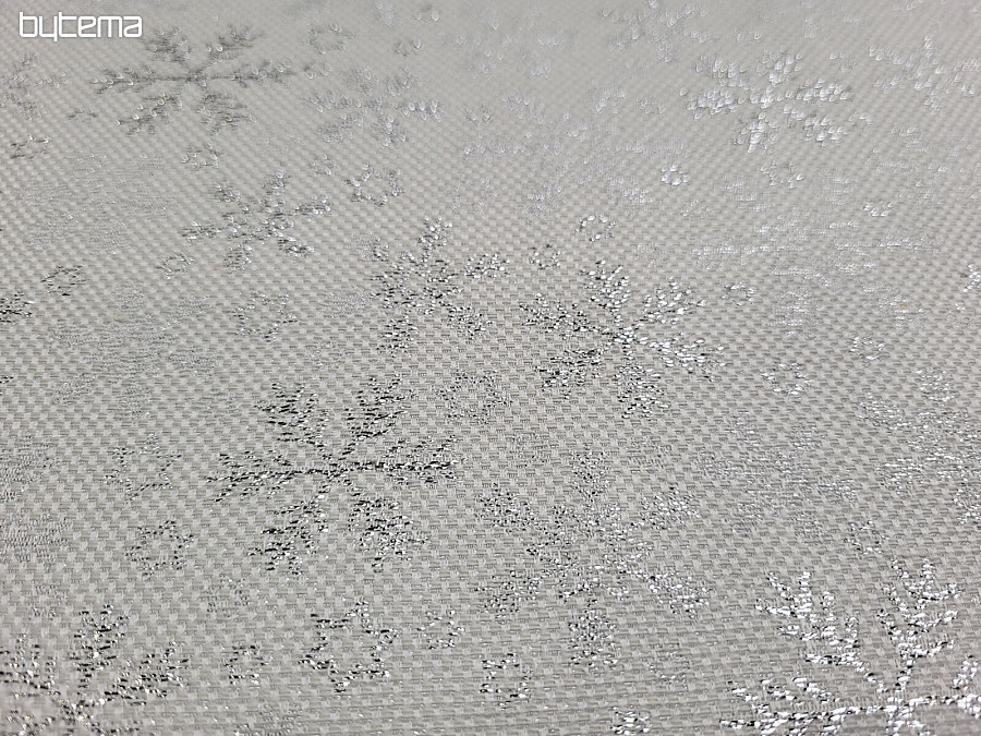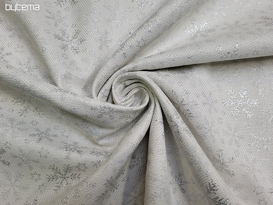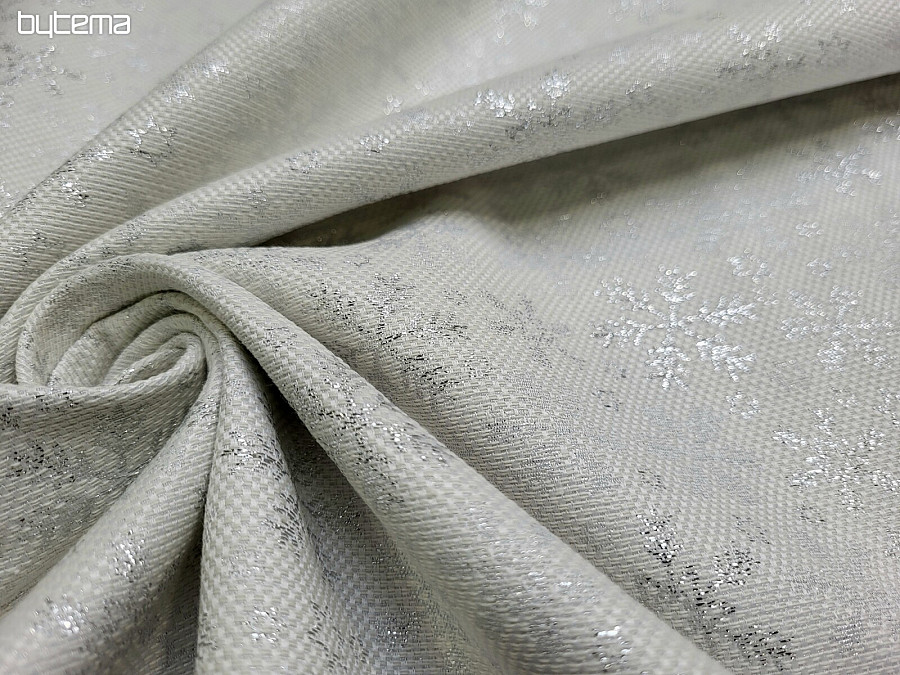 Tela decorativa navideña de bonitos copos plateados grandes y pequeños sobre un fondo crema será una decoración mágica en tu hogar.