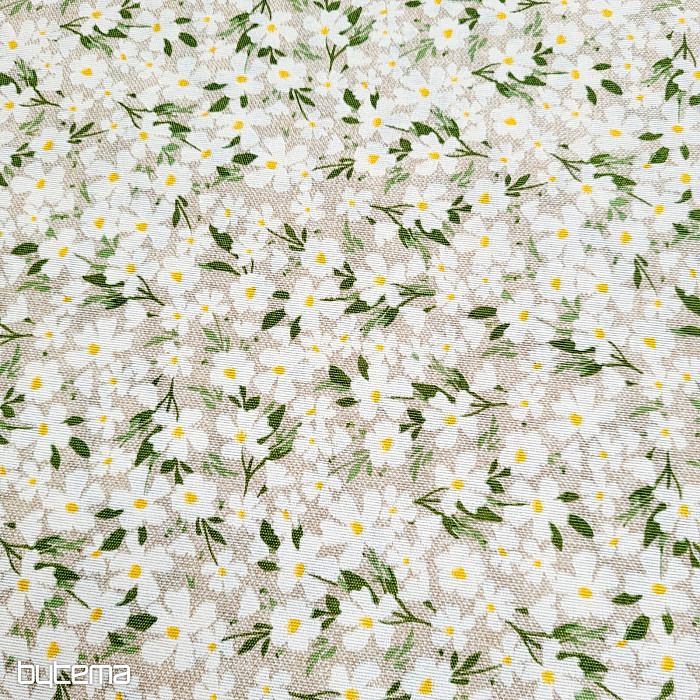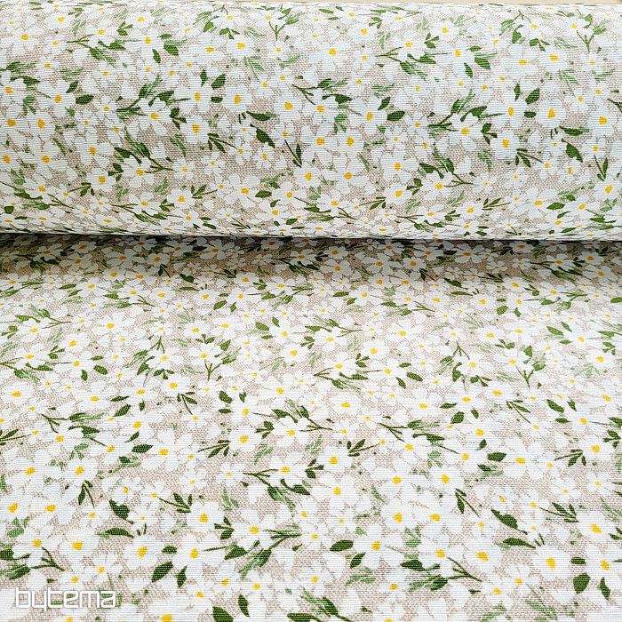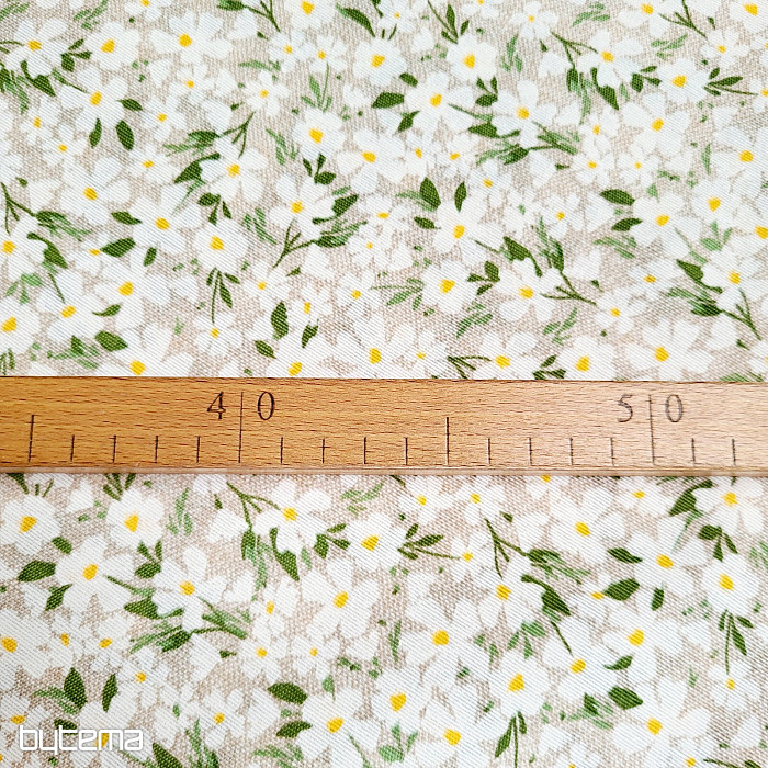 Tela decorativa con delicadas flores blancas que brillan como margaritas.