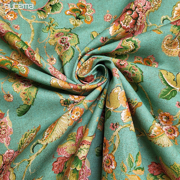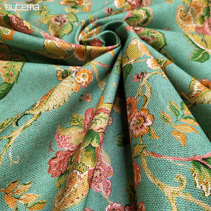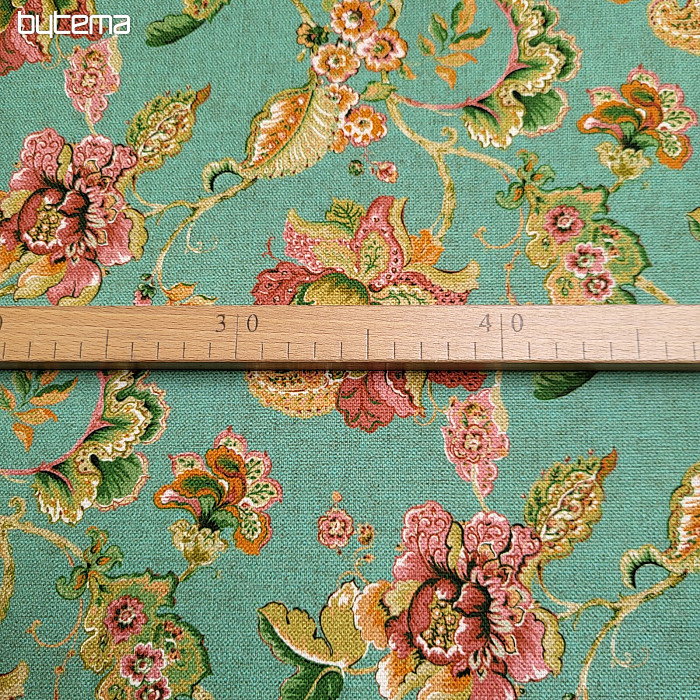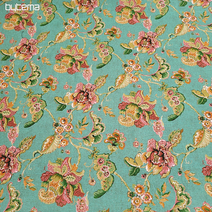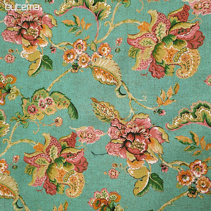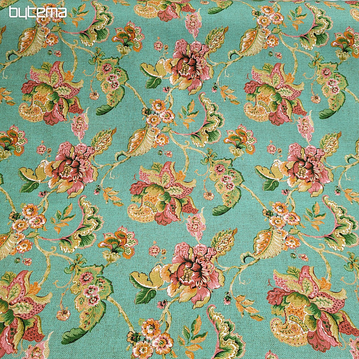 Las grandes flores indias de colores sobre un fondo turquesa tienen un efecto calmante.
