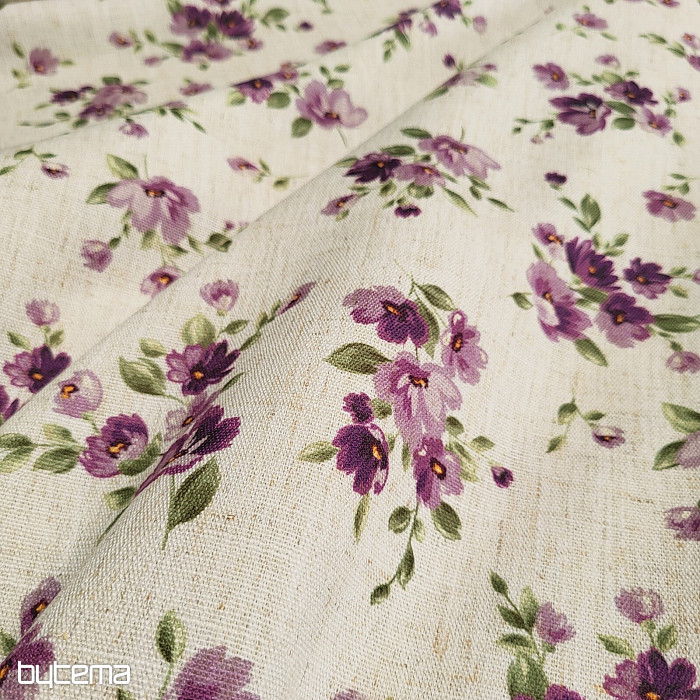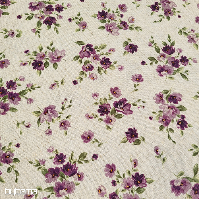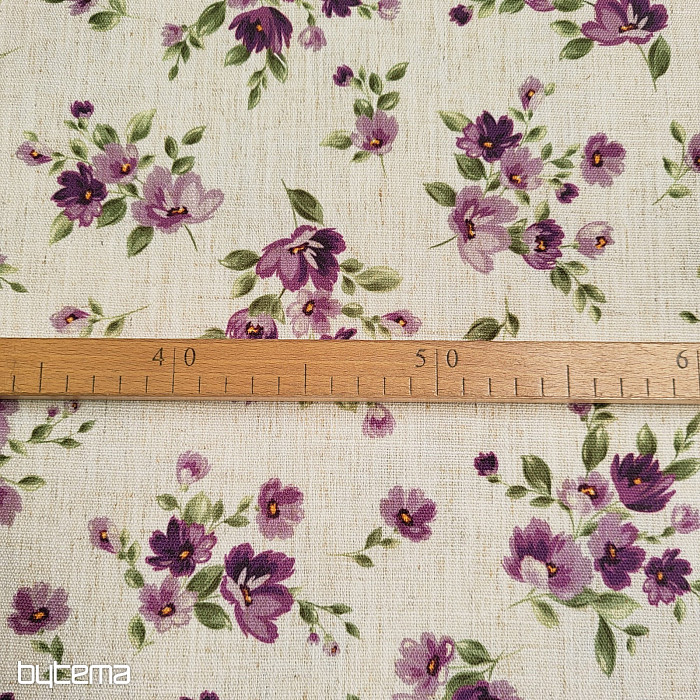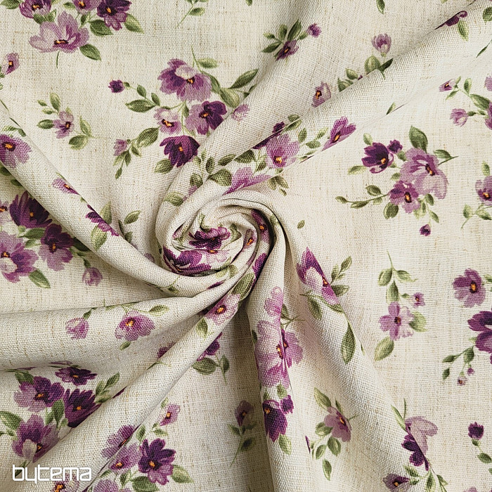 Un tejido decorativo con flores primaverales en color morado oscuro decorará tu cocina y tu pérgola.