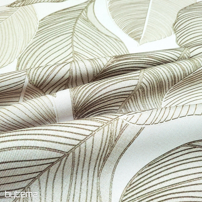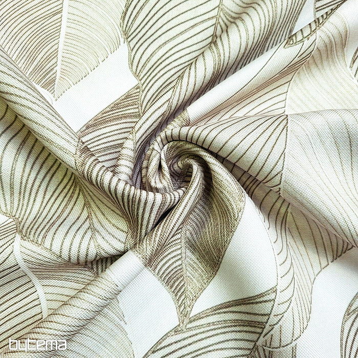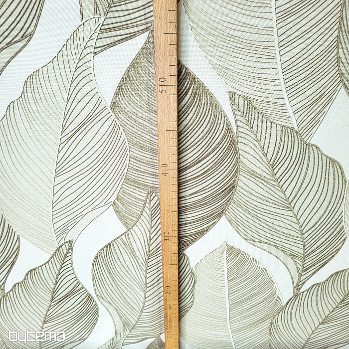 La tela decorativa con hojas maxi en tono verde es adecuada para coser cortinas que quedarán absolutamente perfectas.