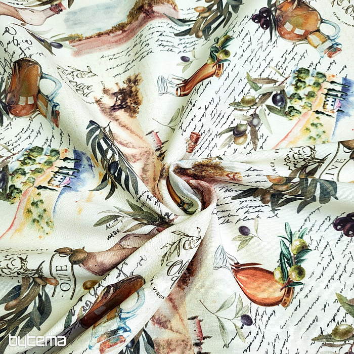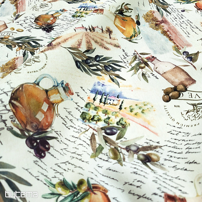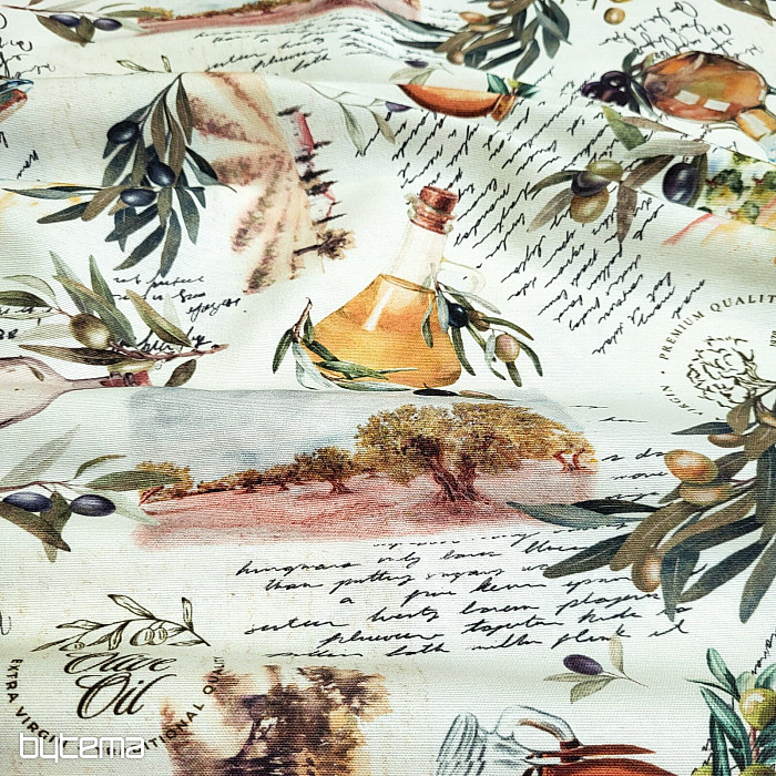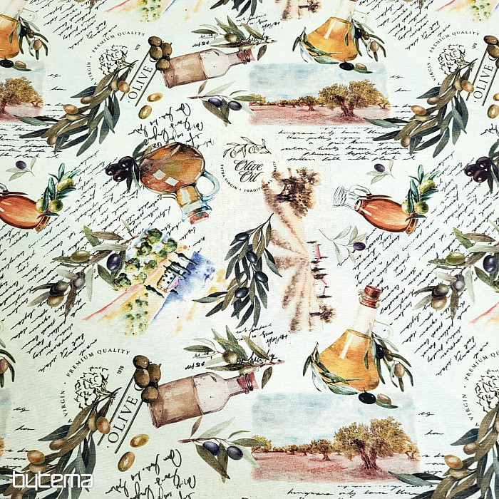 La tela decorativa con motivo de oliva tiene un aspecto fresco y mediterráneo y es adecuada para la cocina, el comedor o las decoraciones de verano.