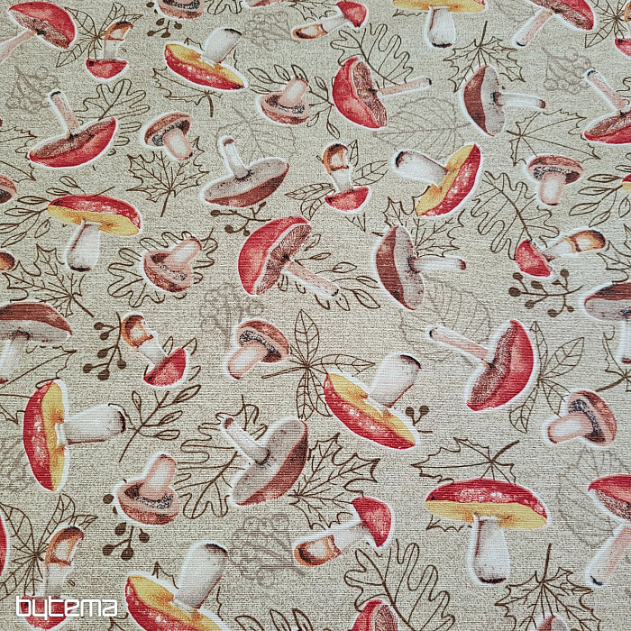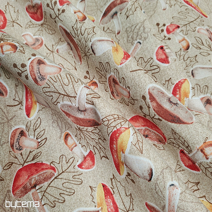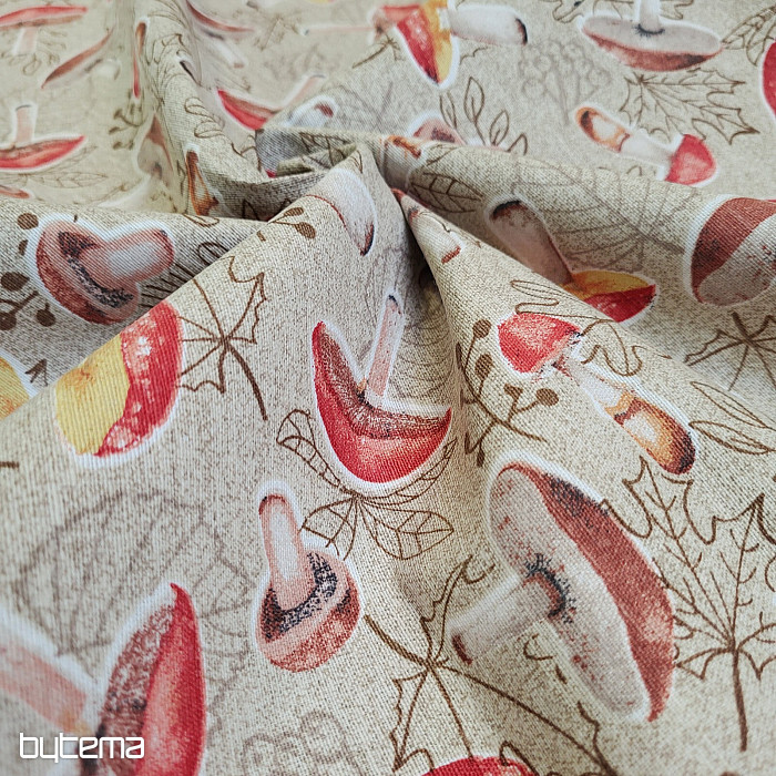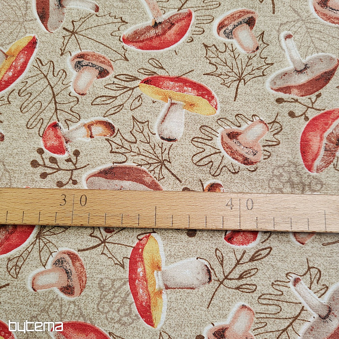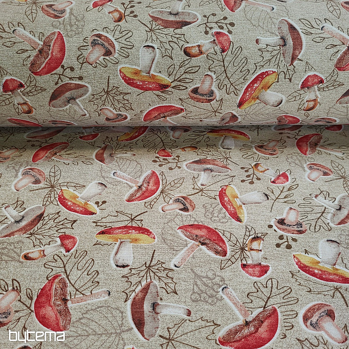La tela decorativa de otoño llena de hermosos hongos deleitará la vista de cada habitante de una cabaña o propietario de una casa.
