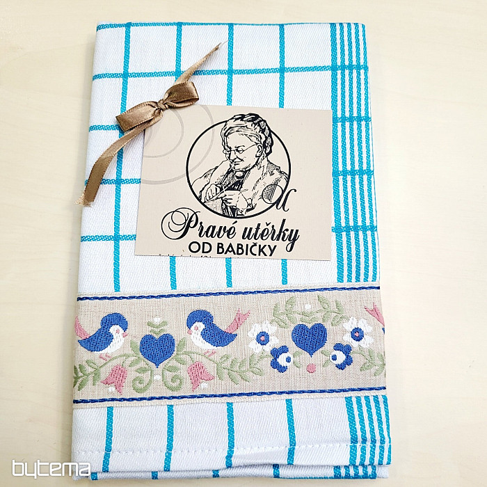 Paños de cocina de algodón suave con estampado de cuadros y dobladillo inferior con adorables pájaros. Una decoración preciosa y delicada para tu cocina.