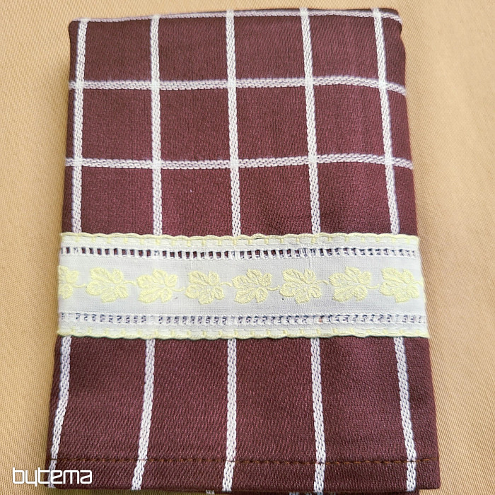 Paños de cocina de algodón suave con estampado de cuadros y ribete amarillo con hojas amarillas. Una decoración bonita y delicada para tu cocina.