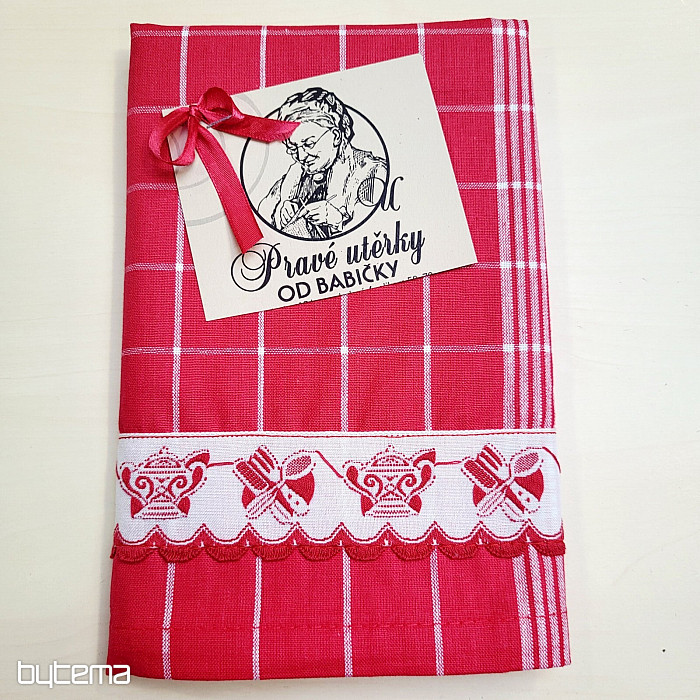 Paños de cocina de algodón suave con estampado de cuadros y dobladillo con utensilios de cocina. Una decoración preciosa y delicada para tu cocina.